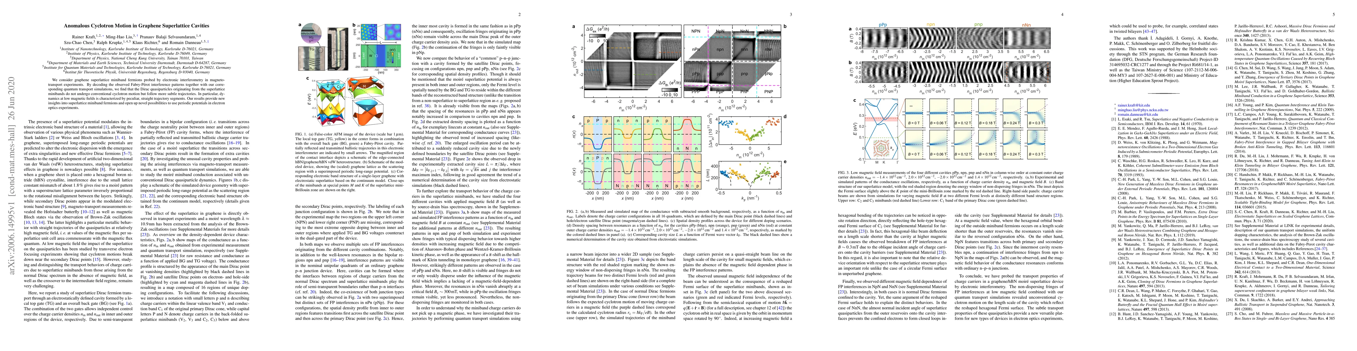 This paper investigates graphene superlattice miniband fermions using electronic interferometry and finds that Dirac quasiparticles exhibit anomalous cyclotron motion, characterized by unusual straight trajectory segments at low magnetic fields, offering new insights into superlattice dynamics and potential applications in electron optics.