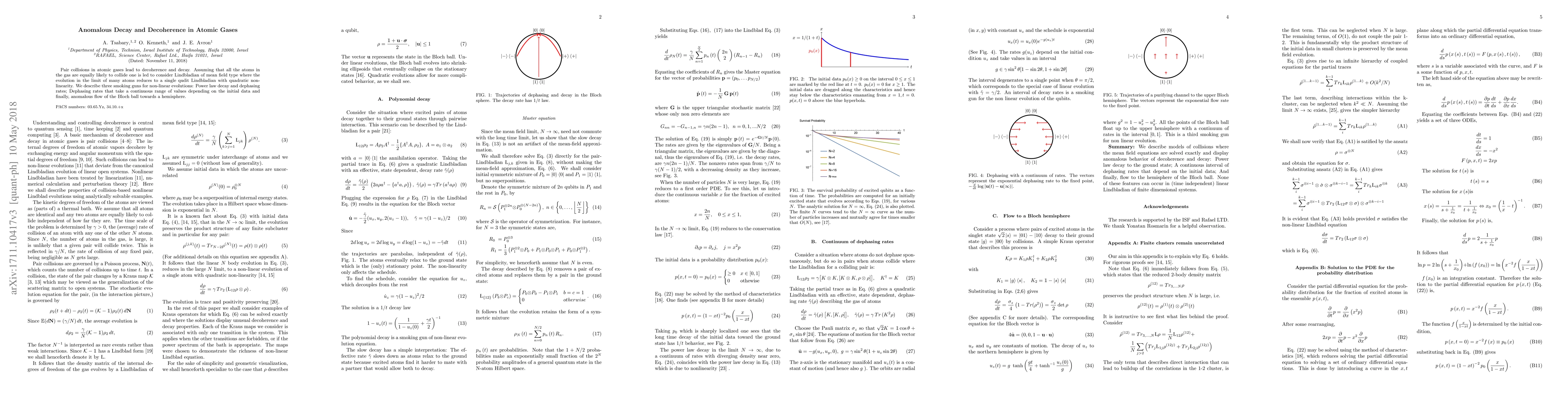 Research finds that in atomic gases, collisions lead to decoherence and decay, with non-linear effects revealed through power law decay rates, continuous dephasing rate values, and anomalous flow of the Bloch ball towards a hemisphere.