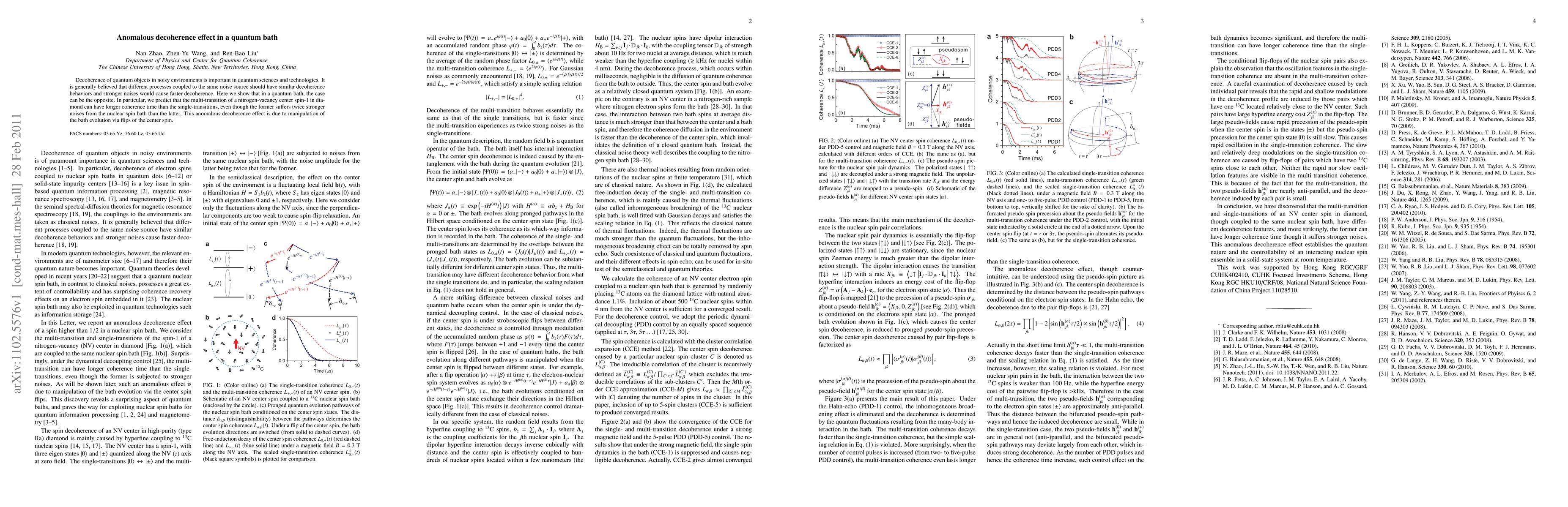 This paper presents an anomalous decoherence effect where multi-transition processes in a nitrogen-vacancy center spin-1 in diamond exhibit longer coherence times than single-transitions, despite experiencing stronger noise from the nuclear spin bath. This counterintuitive result is attributed to the manipulation of the quantum bath's evolution through spin flips.