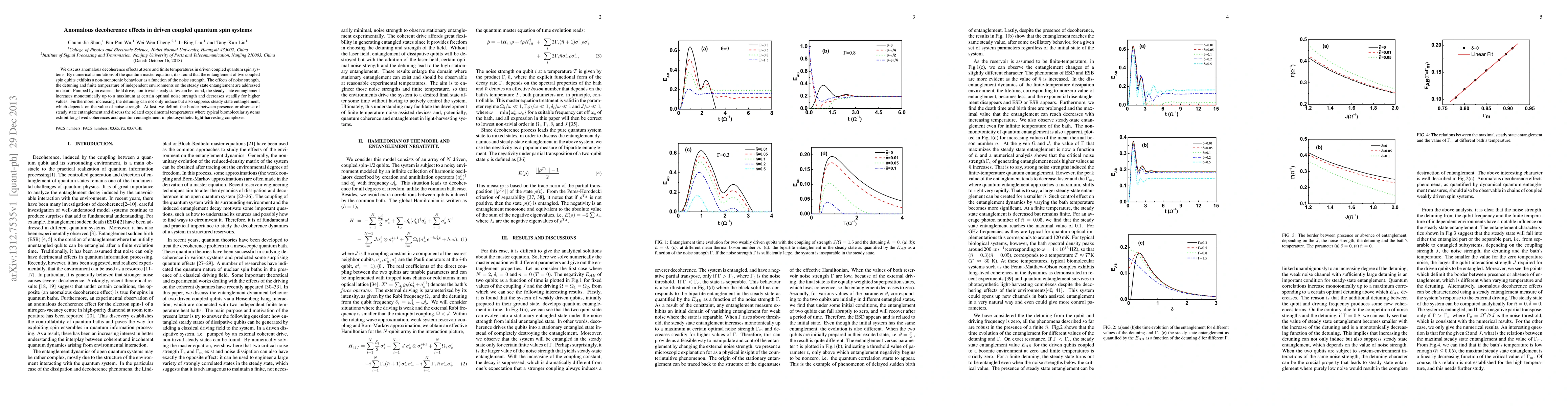 Researchers found that driven coupled quantum spin systems exhibit non-monotonic entanglement behavior in response to noise strength, temperature, and detuning, with optimal conditions for steady state entanglement at certain levels of these factors.