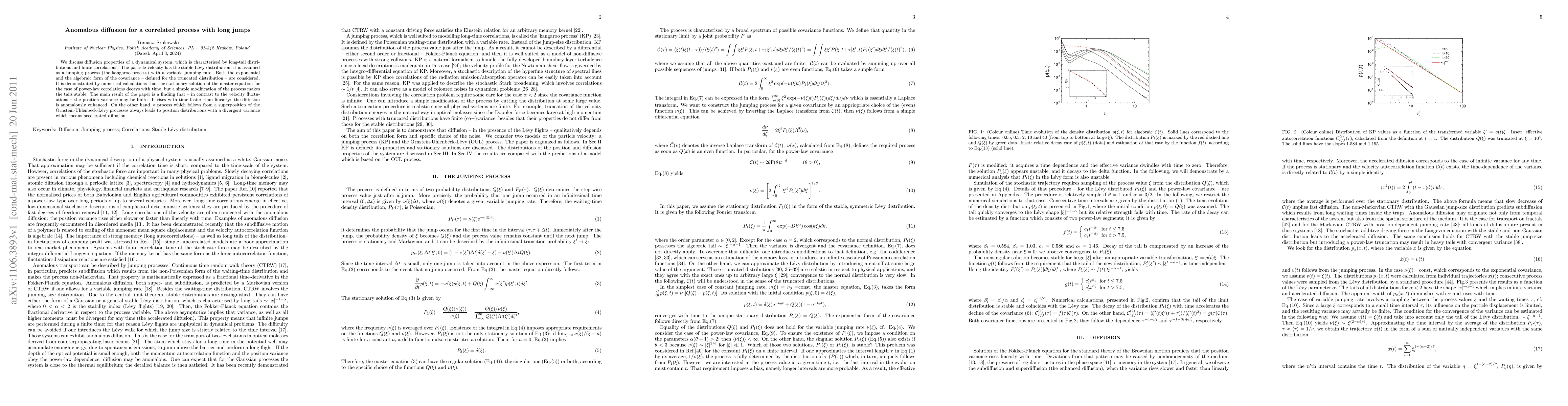 We discuss diffusion properties of a dynamical system, which is characterised by long-tail distributions and finite correlations. The particle velocity has the stable L\'evy distribution; it is assumed as a jumping process (the kangaroo process) with a variable jumping rate. Both the exponential and the algebraic form of the covariance -- defined for the truncated distribution -- are considered. It is demonstrated by numerical calculations that the stationary solution of the master equation for the case of power-law correlations decays with time, but a simple modification of the process makes the tails stable. The main result of the paper is a finding that -- in contrast to the velocity fluctuations -- the position variance may be finite. It rises with time faster than linearly: the diffusion is anomalously enhanced. On the other hand, a process which follows from a superposition of the Ornstein-Uhlenbeck-L\'evy processes always leads to position distributions with a divergent variance which means accelerated diffusion.