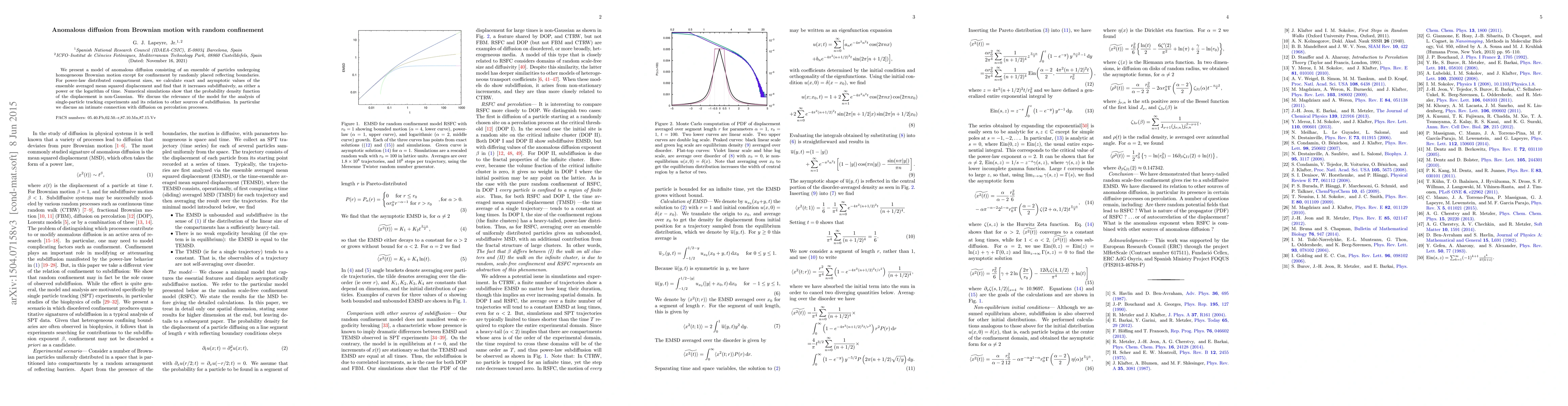 The work introduces a novel model of anomalous diffusion with random confinement, connecting it to diffusion on percolation processes and offering a framework for understanding subdiffusion in various experimental setups.