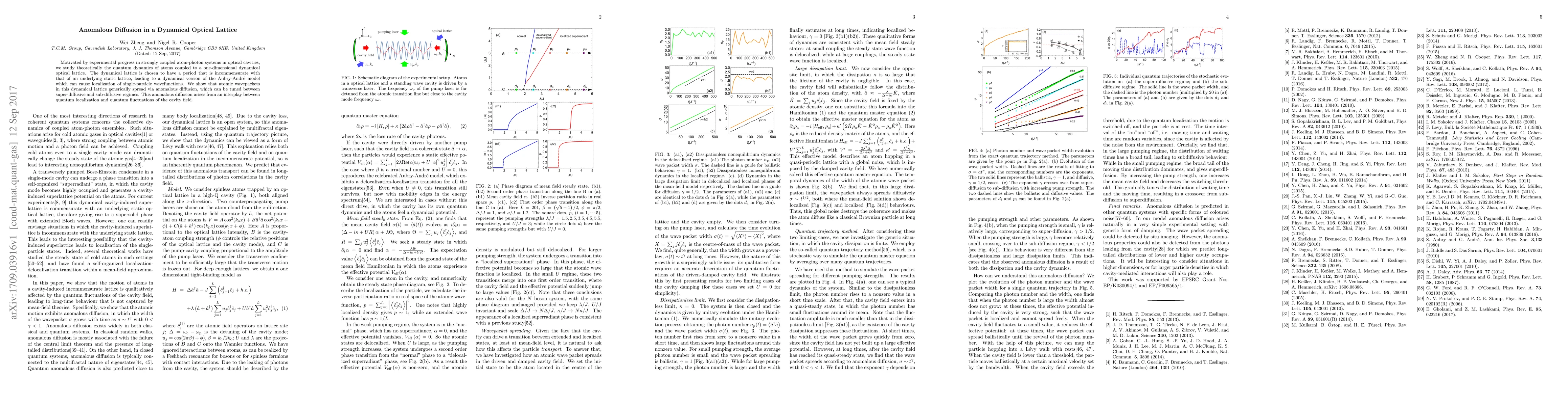 This paper investigates the quantum dynamics of atoms in a one-dimensional dynamical optical lattice, demonstrating that atomic wavepackets exhibit anomalous diffusion due to quantum localization and cavity field fluctuations. The diffusion can be tuned between super-diffusive and sub-diffusive regimes.