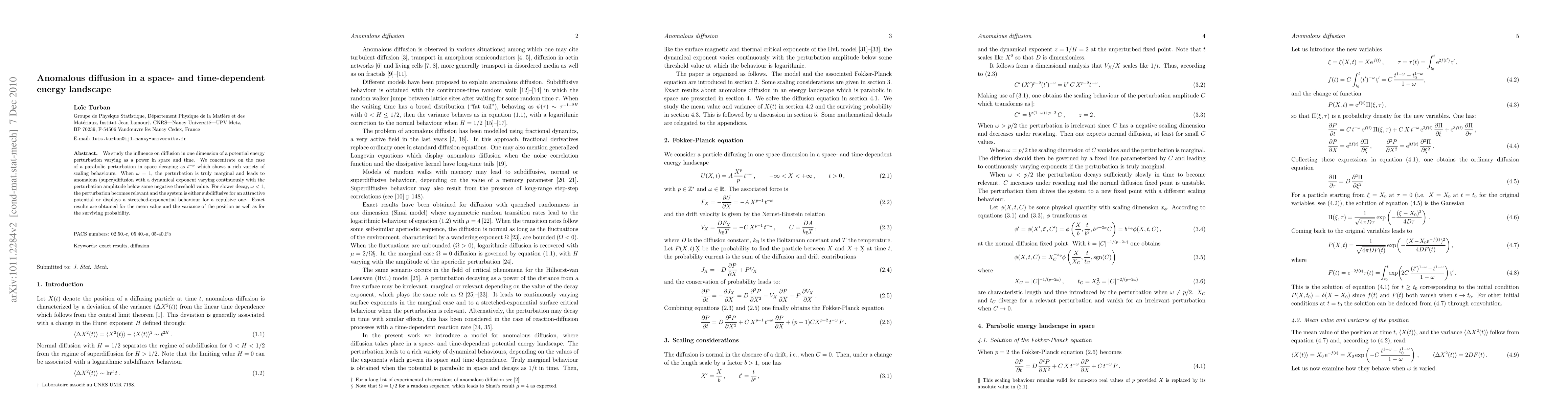 We study the influence on diffusion in one dimension of a potential energy perturbation varying as a power in space and time. We concentrate on the case of a parabolic perturbation in space decaying as $t^{-\omega}$ which shows a rich variety of scaling behaviours. When $\omega=1$, the perturbation is truly marginal and leads to anomalous (super)diffusion with a dynamical exponent varying continuously with the perturbation amplitude below some negative threshold value. For slower decay, $\omega<1$, the perturbation becomes relevant and the system is either subdiffusive for an attractive potential or displays a stretched-exponential behaviour for a repulsive one. Exact results are obtained for the mean value and the variance of the position as well as for the surviving probability.