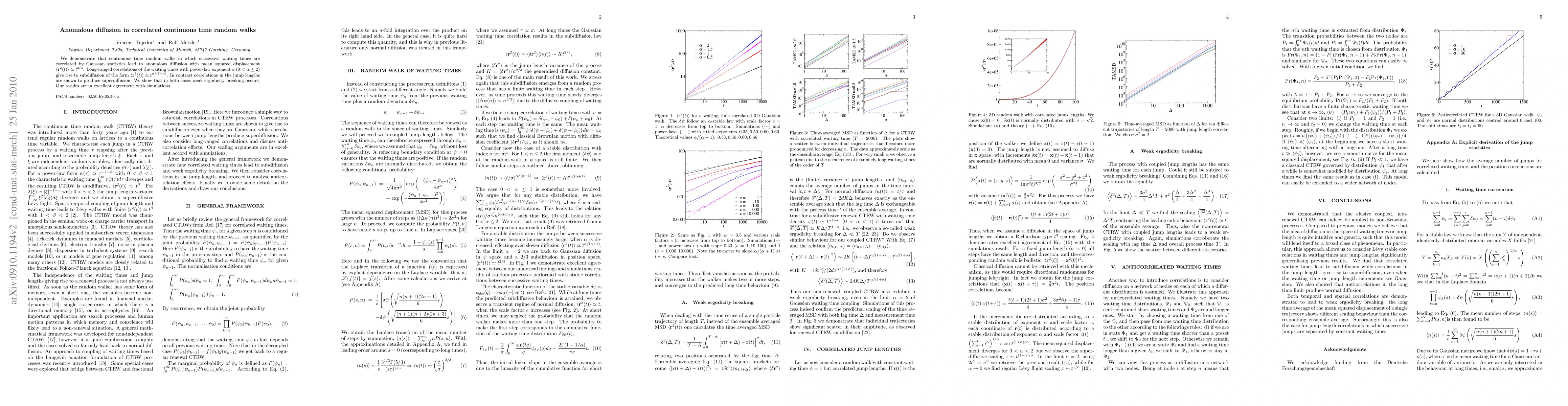 This paper investigates continuous time random walks with correlated waiting times, revealing that such correlations can lead to anomalous diffusion characterized by a mean squared displacement scaling as t^{2/3}. Long-range correlations with a power-law exponent result in subdiffusion, while correlations in jump lengths induce superdiffusion, with both cases exhibiting weak ergodicity breaking. Simulation results corroborate these findings.
