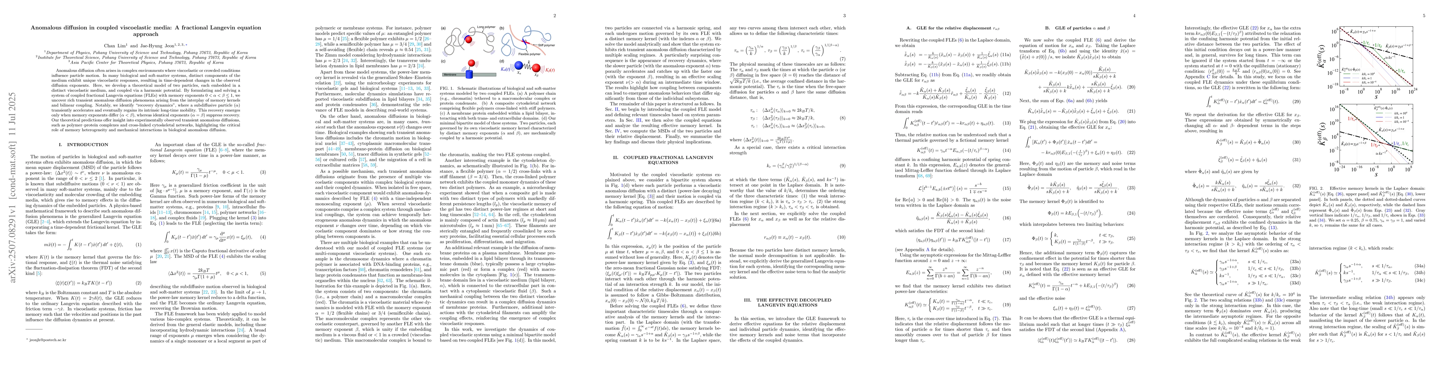 Anomalous diffusion often arises in complex environments where viscoelastic or crowded conditions influence particle motion. In many biological and soft-matter systems, distinct components of the medium exhibit unique viscoelastic responses, resulting in time-dependent changes in the observed diffusion exponents. Here, we develop a theoretical model of two particles, each embedded in a distinct viscoelastic medium, and coupled via a harmonic potential. By formulating and solving a system of coupled fractional Langevin equations (FLEs) with memory exponents $0<\alpha<\beta\leq 1$, we uncover rich transient anomalous diffusion phenomena arising from the interplay of memory kernels and bilinear coupling. Notably, we identify recovery dynamics, where a subdiffusive particle ($\alpha$) transiently accelerates and eventually regains its intrinsic long-time mobility. This recovery emerges only when memory exponents differ ($\alpha<\beta$), whereas identical exponents ($\alpha=\beta$) suppress recovery. Our theoretical predictions offer insight into experimentally observed transient anomalous diffusions, such as polymer--protein complexes and cross-linked cytoskeletal networks, highlighting the critical role of memory heterogeneity and mechanical interactions in biological anomalous diffusion.