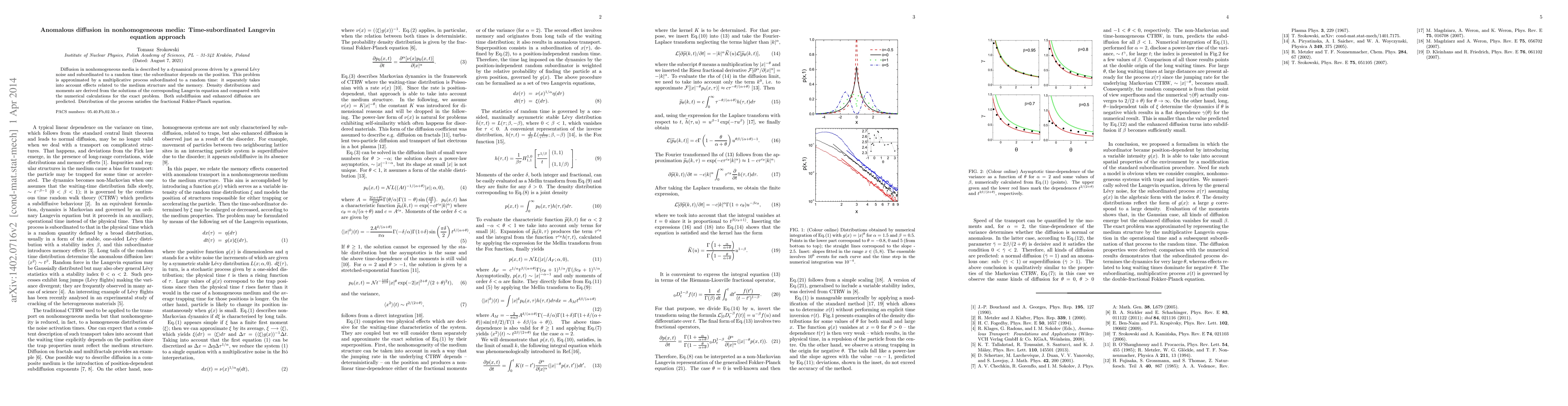 This paper investigates anomalous diffusion in nonhomogeneous media using a time-subordinated Langevin equation approach driven by Lévy noise and a position-dependent subordinator. It derives density distributions and moments, predicting both subdiffusion and enhanced diffusion, and compares these with numerical calculations.