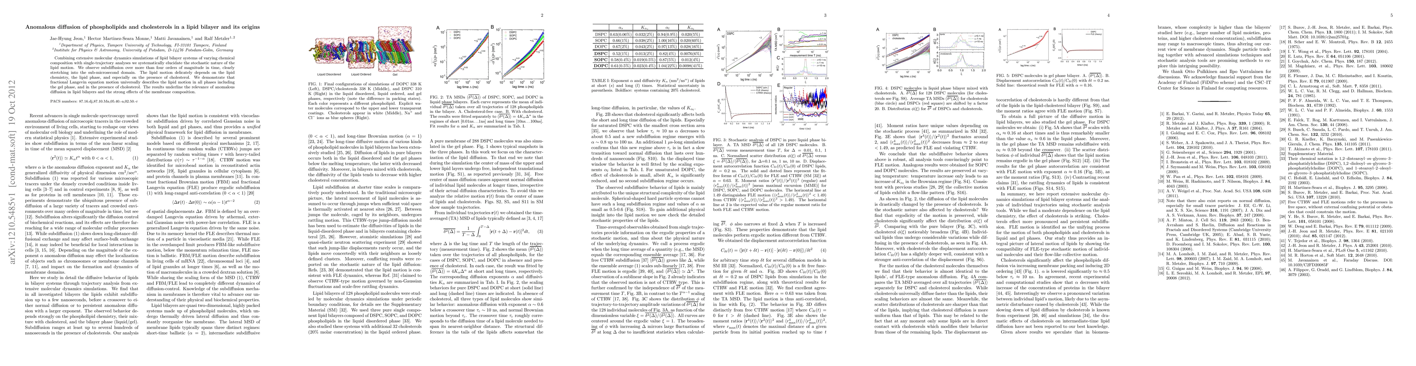 This study combines molecular dynamics simulations and single-trajectory analyses to reveal the anomalous diffusion of phospholipids and cholesterols in lipid bilayers, showing subdiffusion over four orders of magnitude in time. The findings highlight the significant influence of lipid chemistry, phase, and cholesterol presence, with fractional Langevin equation motion describing the lipid dynamics across all phases.
