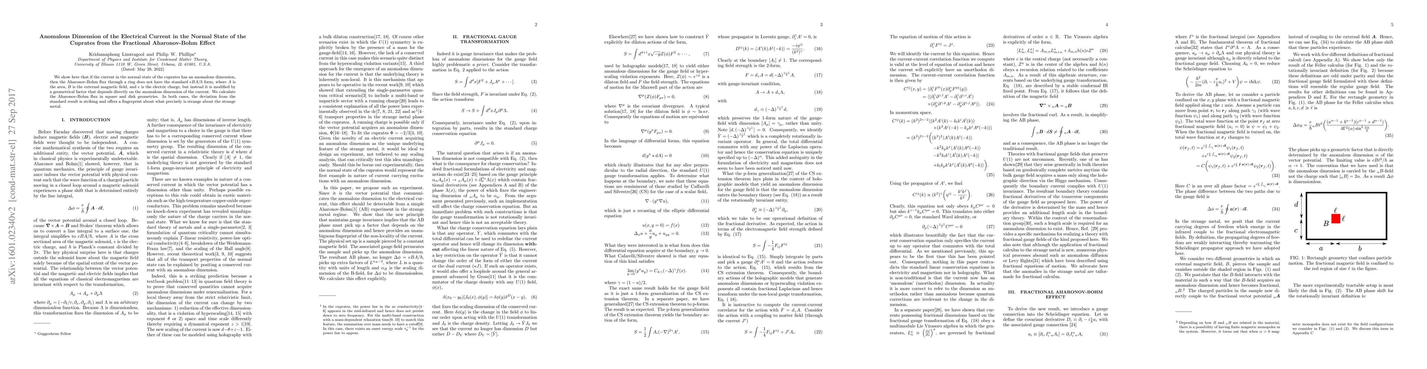We demonstrate quite generally how a conserved current can have an anomalous dimension. We show here that if the current in the normal state of the cuprates has an anomalous dimension, then the Aharonov-Bohm flux through a ring does not have the standard $eBA/\hbar$ form, where $A$ is the area and $B$ the external magnetic field, but instead is modified by a geometrical factor that depends directly on the anomalous dimension of the current. We calculate the signal in square and disk geometries. In both cases, the deviation from the standard result is striking and offers a fingerprint about what precisely is strange about the strange metal.