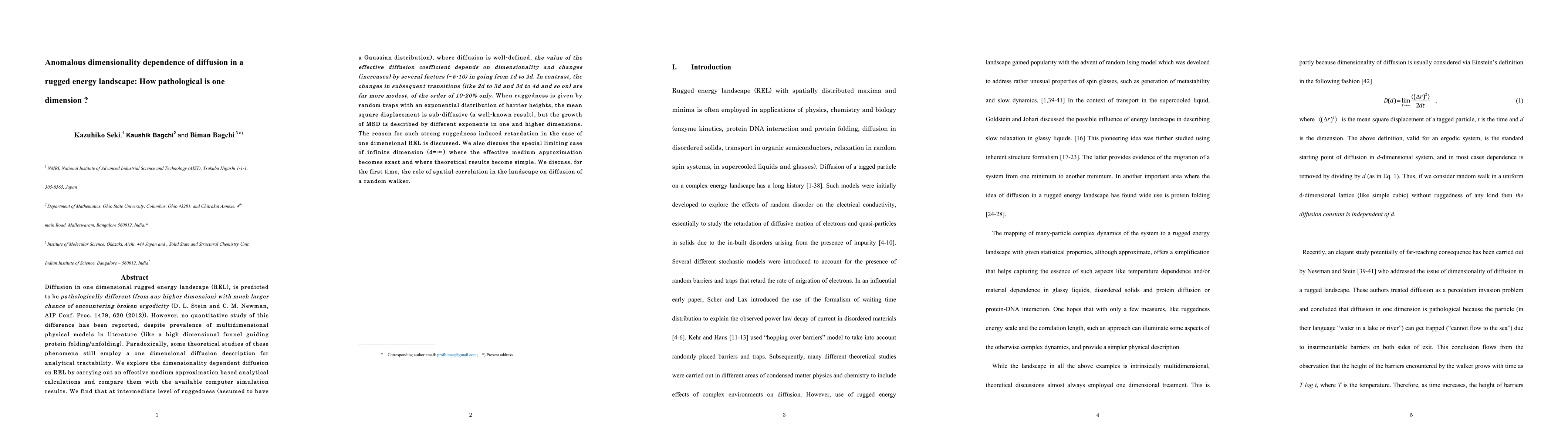 Rugged (or, rough) energy landscape (REL) with spatially distributed maxima and minima are often employed in applications of physics, chemistry and biology (enzyme kinetics, protein folding, diffusion in disordered solids, transport in organic semiconductors, relaxation in random spin systems, in supercooled liquids and glasses). Sometimes the system needs to be modeled as a random walker in high dimensions (like in protein folding/unfolding) where dimensions could be the distances between different amino acid residues (as in unfolding of HP-36). Nevertheless, most of the theoretical studies of these phenomena still employ a one dimensional description. This is despite the prediction that in a rough (or, rugged) energy landscape (REL), diffusion in one dimension (1d) is predicted to be pathologically different from any higher dimension with the increased chance of encountering broken ergodicity (Stein and Newman, 2012). We explore the dimensionality dependent diffusion on REL by carrying out an effective medium approximation based analytical calculations and compare them with the available computer simulation results. We find that at intermediate level of ruggedness (assumed to have a Gaussian distribution), where diffusion is well-defined, the value of the effective diffusion coefficient depends on dimensionality and changes (increases) by several factors (~5-10) in going from 1d to 2d. In contrast, the changes in subsequent transitions (like 2d to 3d and 3d to 4d and so on) are far more modest, of the order of 10-20% only. When ruggedness is given by random traps with an exponential distribution of barrier heights, the mean square displacement is sub-diffusive (a well-known result), but the growth of MSD is described by different exponents in one and higher dimensions. The exponent of growth is larger in higher dimensions than in 1d.