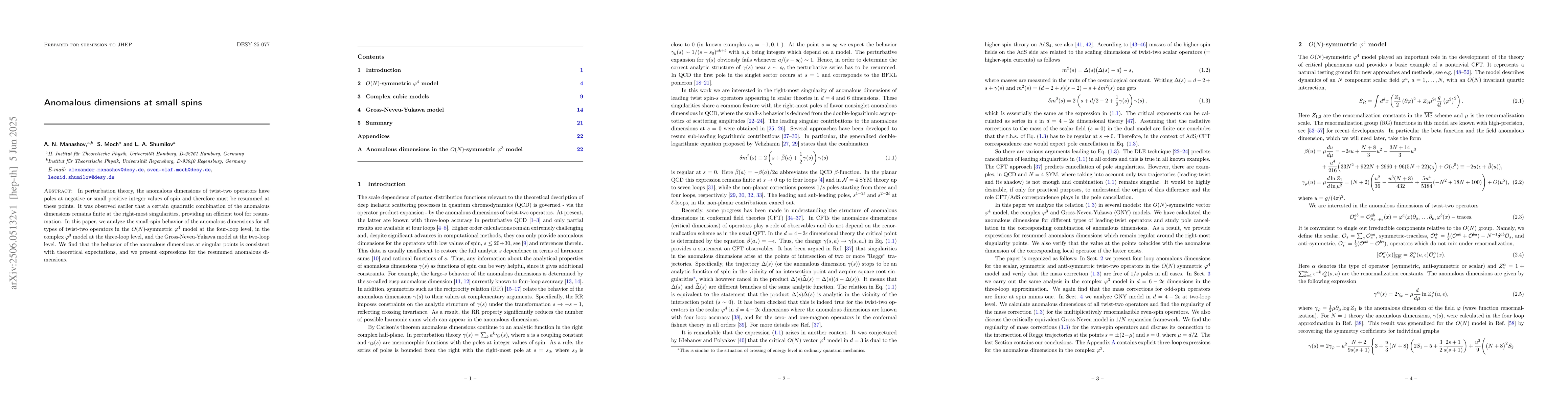 Research paper analyzes anomalous dimensions of twist-two operators in various models at different loop levels, confirming theoretical expectations and providing resummed expressions for the anomalous dimensions.