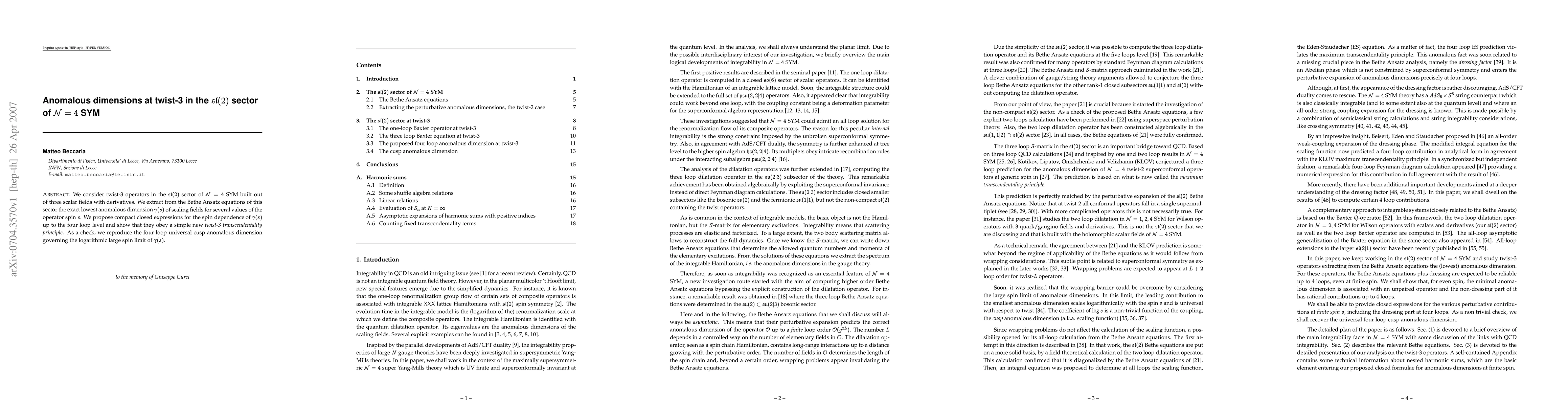 This paper derives exact lowest anomalous dimensions for twist-3 operators in the sl(2) sector of N=4 SYM using the Bethe Ansatz, proposing closed expressions for these dimensions up to four loop level and demonstrating adherence to a new transcendentality principle. The results confirm the four loop universal cusp anomalous dimension in the large spin limit.