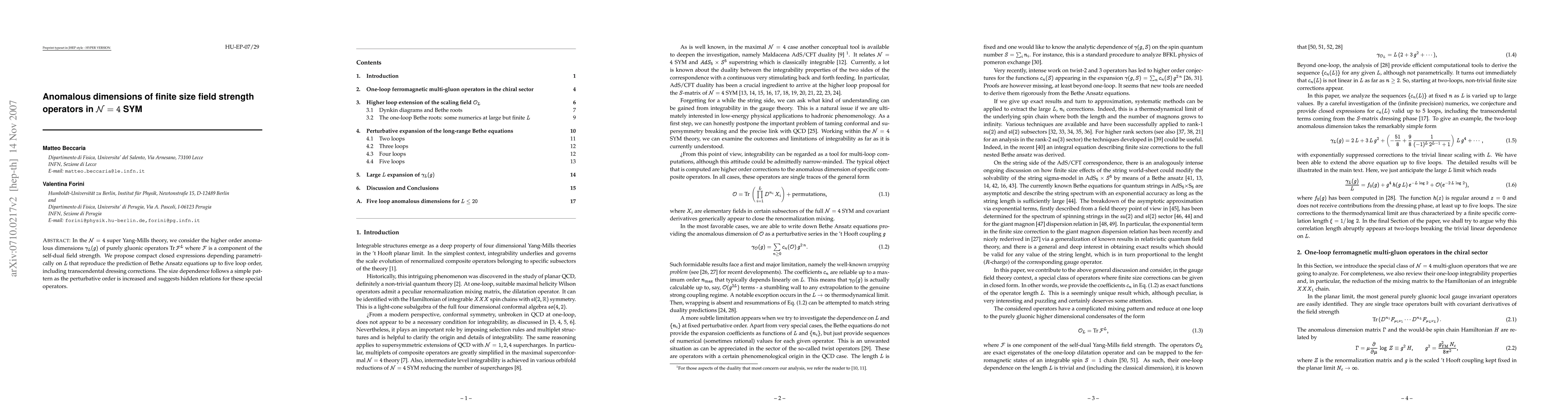 In the N=4 super Yang-Mills theory, we consider the higher order anomalous dimensions gamma_L(g) of purely gluonic operators Tr(F^L) where F is a component of the self-dual field strength. We propose compact closed expressions depending parametrically on L that reproduce the prediction of Bethe Ansatz equations up to five loop order, including transcendental dressing corrections. The size dependence follows a simple pattern as the perturbative order is increased and suggests hidden relations for these special operators.