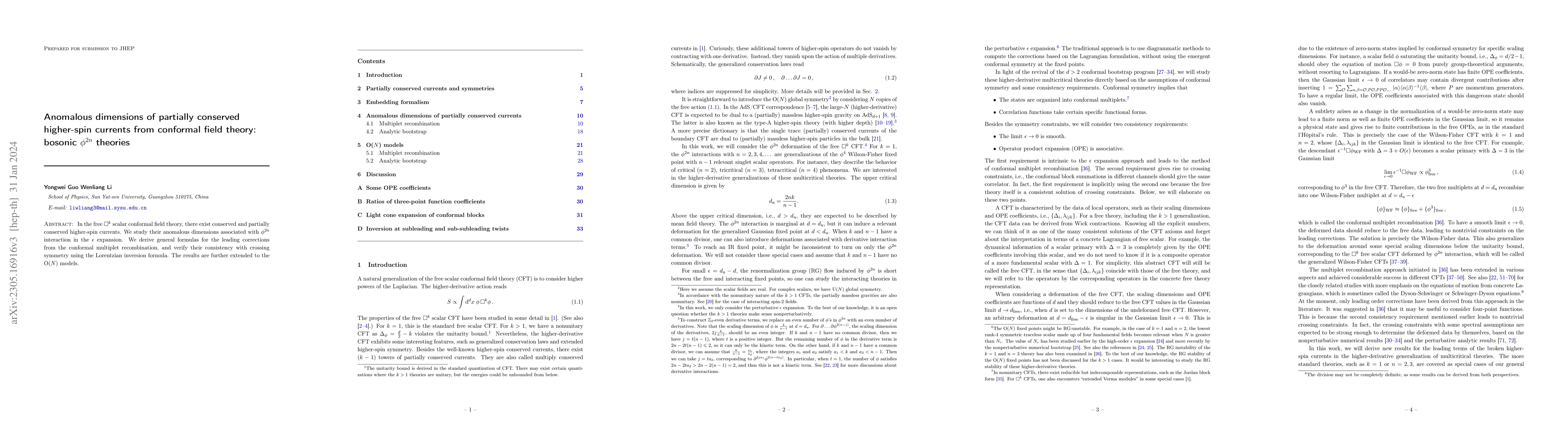This paper investigates the anomalous dimensions of higher-spin currents in the context of free $\Box^k$ scalar conformal field theories, focusing on $\phi^{2n}$ interactions. The authors derive general formulae for leading corrections from conformal multiplet recombination and verify consistency with crossing symmetry using the Lorentzian inversion formula, extending the results to O($N$) models.