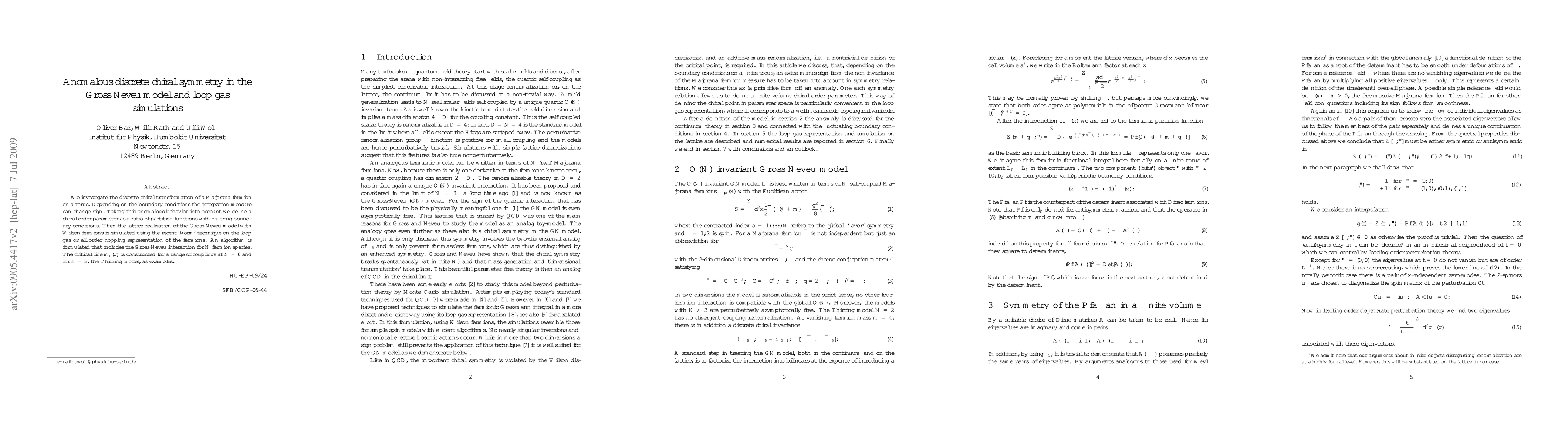 Researchers investigated discrete chiral symmetry in the Gross-Neveu model and loop gas simulations, finding anomalous behavior that affects partition function ratios, and constructed a critical line for different couplings and fermion species.