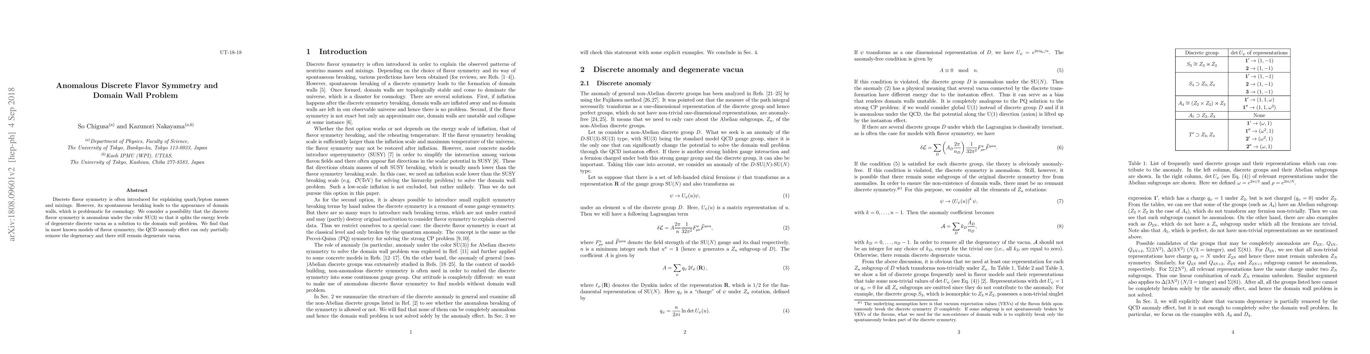 Discrete flavor symmetry is often introduced for explaining quark/lepton masses and mixings. However, its spontaneous breaking leads to the appearance of domain walls, which is problematic for cosmology. We consider a possibility that the discrete flavor symmetry is anomalous under the color SU(3) so that it splits the energy levels of degenerate discrete vacua as a solution to the domain wall problem. We find that in most known models of flavor symmetry, the QCD anomaly effect can only partially remove the degeneracy and there still remain degenerate vacua.