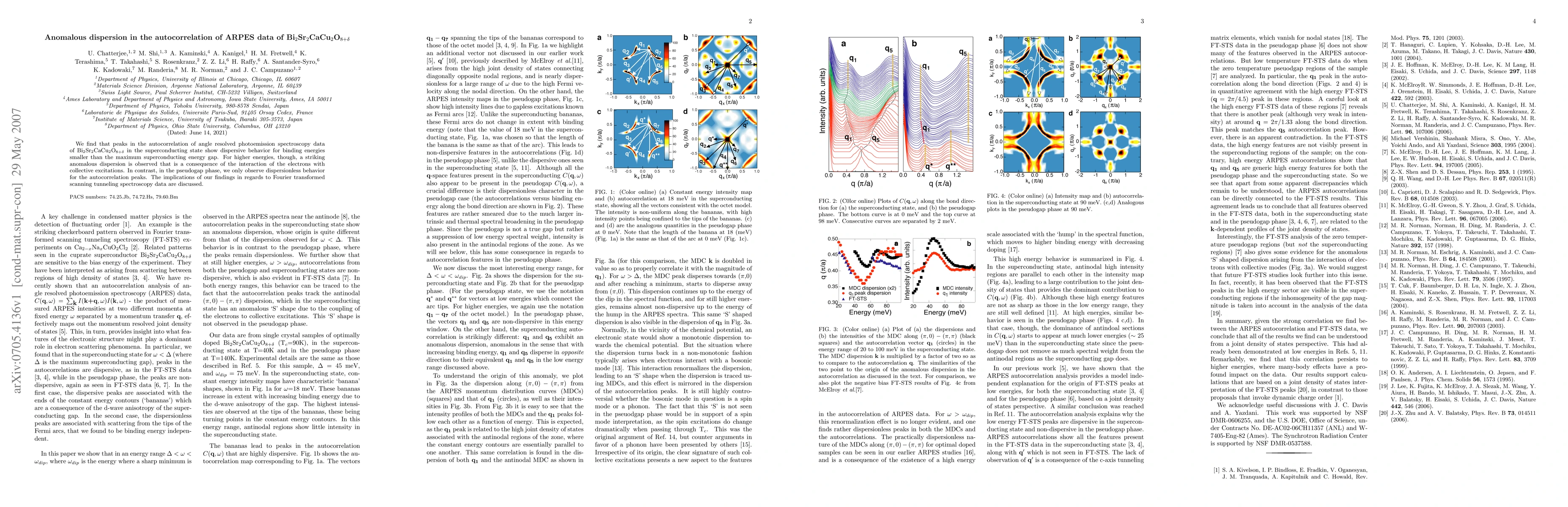Researchers found dispersive behavior in angle-resolved photoemission spectroscopy data of Bi$_2$Sr$_2$CaCu$_2$O$_{8+ heta}$ for energies smaller than the maximum superconducting gap, but only observed dispersionless behavior in the pseudogap phase.