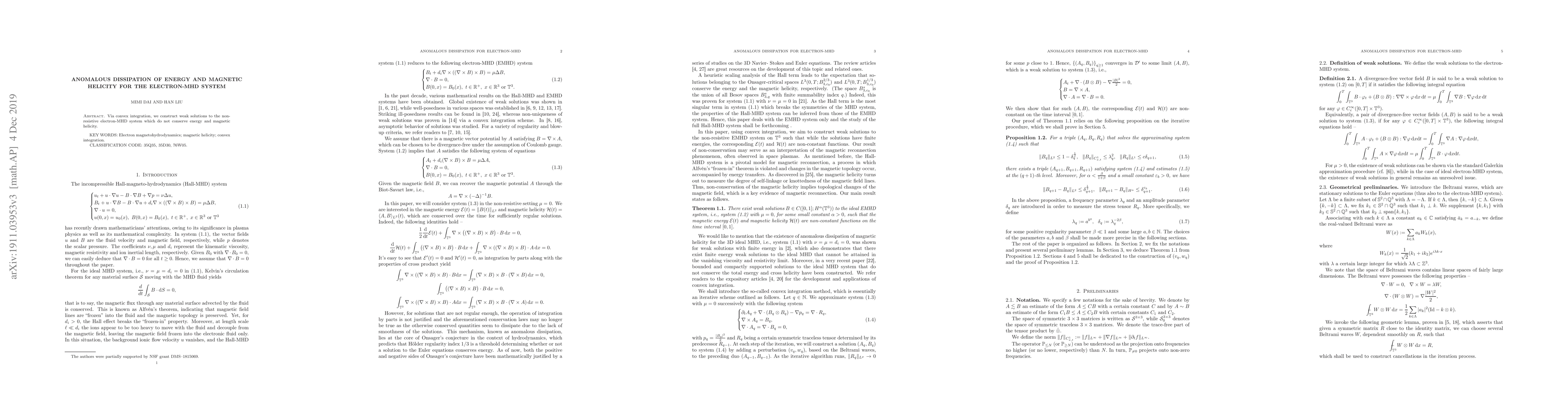 Summary: This paper constructs weak solutions to the non-resistive electron-MHD system using convex integration, demonstrating that these solutions do not conserve energy and magnetic helicity, revealing anomalous dissipation phenomena.