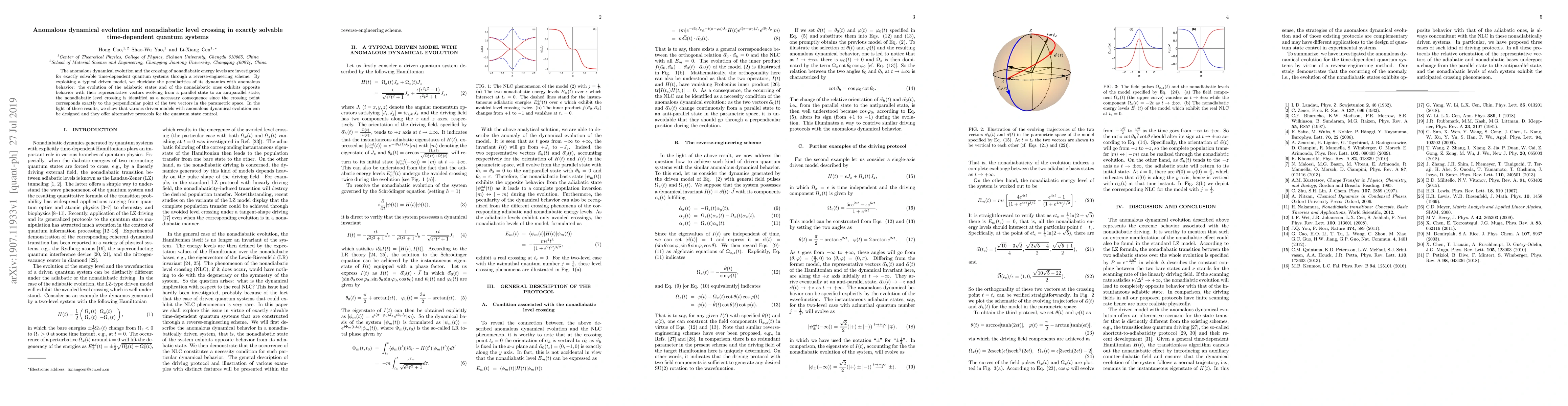 The anomalous dynamical evolution and the crossing of nonadiabatic energy levels are investigated for exactly solvable time-dependent quantum systems through a reverse-engineering scheme. By exploiting a typical driven model, we elucidate the peculiarities of its dynamics with anomalous behavior: the evolution of the adiabatic states and of the nonadiabatic ones exhibits opposite behavior with their representative vectors evolving from a parallel state to an antiparallel state: the nonadiabatic level crossing is identified as a necessary consequence since the crossing point corresponds exactly to the perpendicular point of the two vectors in the parametric space. In the light of these results, we show that various driven models with anomalous dynamical evolution can be designed and they offer alternative protocols for the quantum state control.
