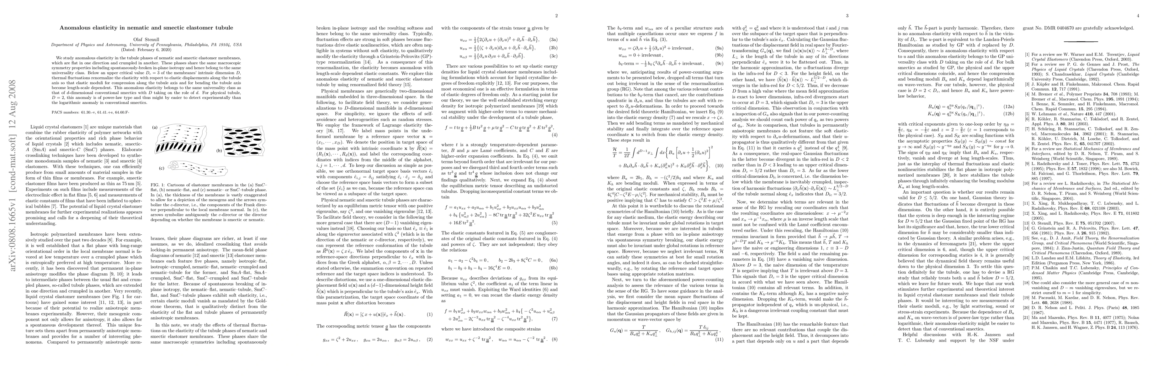 This paper investigates anomalous elasticity in nematic and smectic elastomer tubules, revealing length-scale dependent elastic moduli below a critical intrinsic dimension. The anomaly shares universality with conventional smectics, potentially offering a more detectable power-law anomaly experimentally.