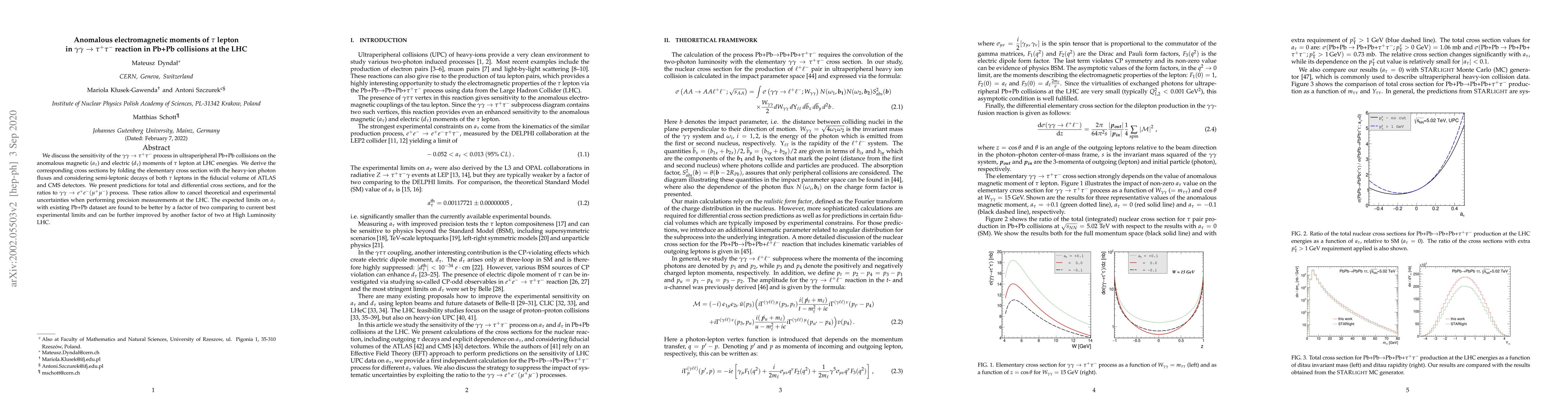 This paper explores the sensitivity of the $\gamma \gamma \to \tau^+ \tau^-$ process in ultraperipheral Pb+Pb collisions at the LHC to the anomalous magnetic and electric moments of the $\tau$ lepton. It predicts cross sections and ratios to $\gamma \gamma \to e^+ e^- (\mu^+ \mu^-)$ to improve precision measurements of $a_{\tau}$, showing potential for significant improvements in limits with existing and future LHC data.