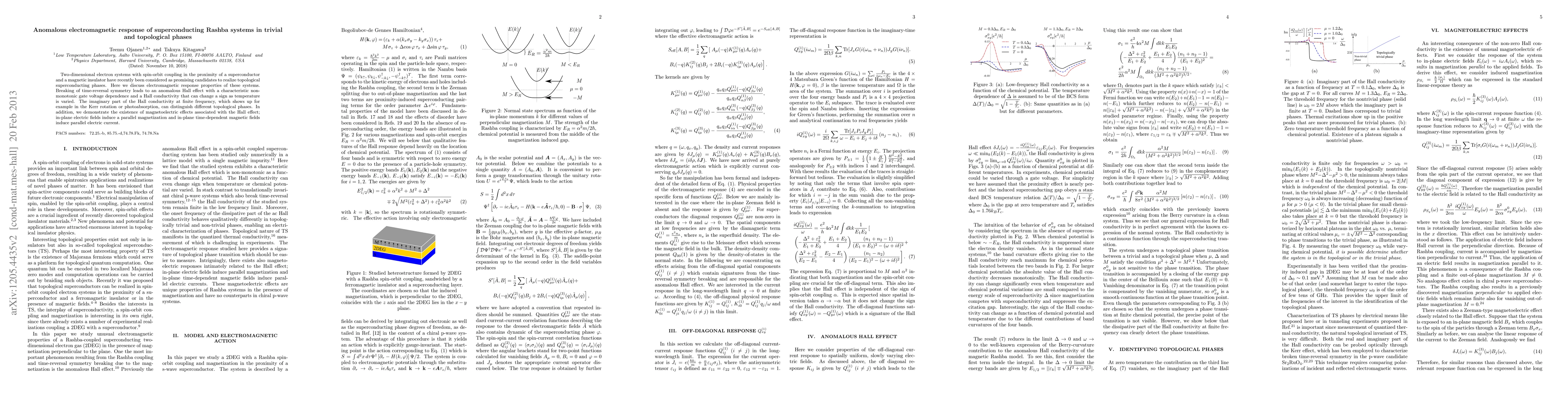 Two-dimensional electron systems with spin-orbit coupling exhibit anomalous Hall effects due to broken time-reversal symmetry, allowing for detection of different topological phases through electromagnetic response properties.