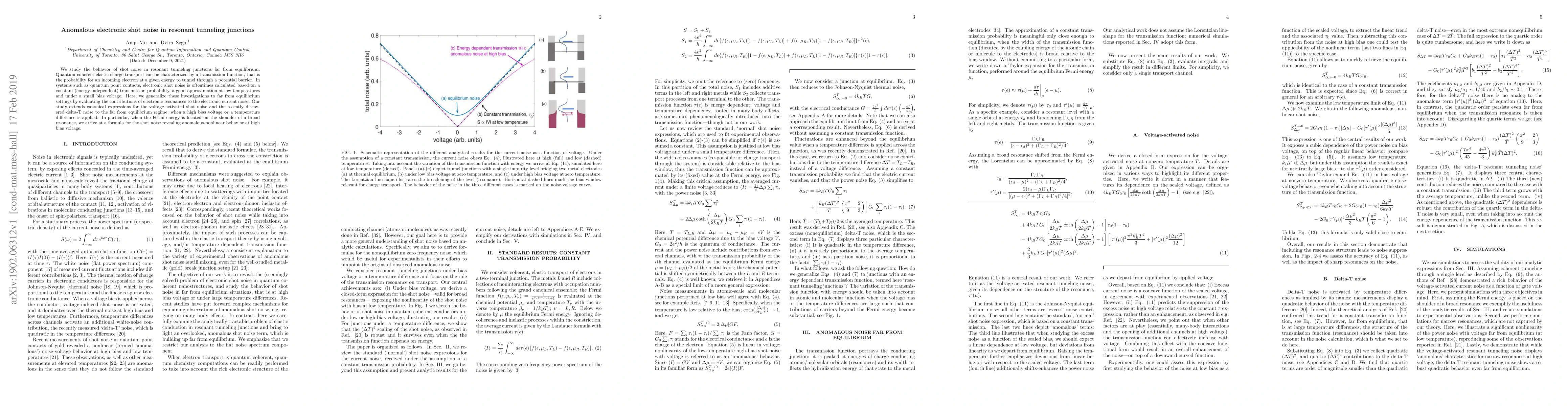 This paper investigates shot noise in resonant tunneling junctions under non-equilibrium conditions, extending traditional noise calculations to high bias voltages. It reveals anomalous, nonlinear behavior in shot noise when the Fermi energy aligns with a broad resonance peak, challenging conventional assumptions about constant transmission probabilities.