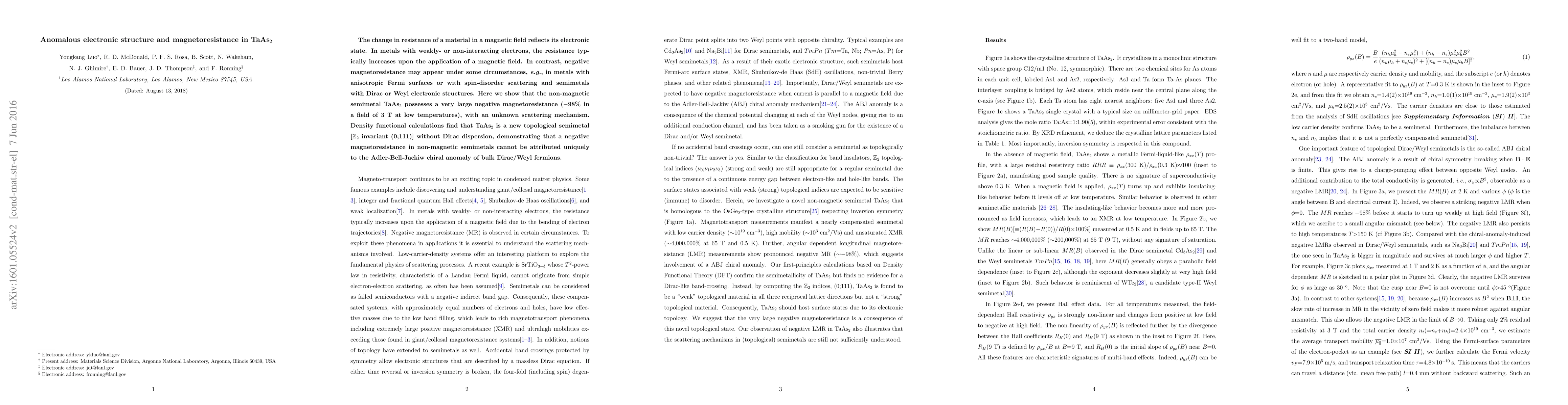This paper investigates TaAs$_2$, a semimetallic material exhibiting unprecedented negative magnetoresistance (−98% at 3 T and low temperatures), challenging the conventional understanding of magnetoresistance in metals. Density functional calculations reveal TaAs$_2$ to be a new topological semimetal, indicating a broader scope for unconventional topological semimetals beyond Dirac/Weyl fermions.