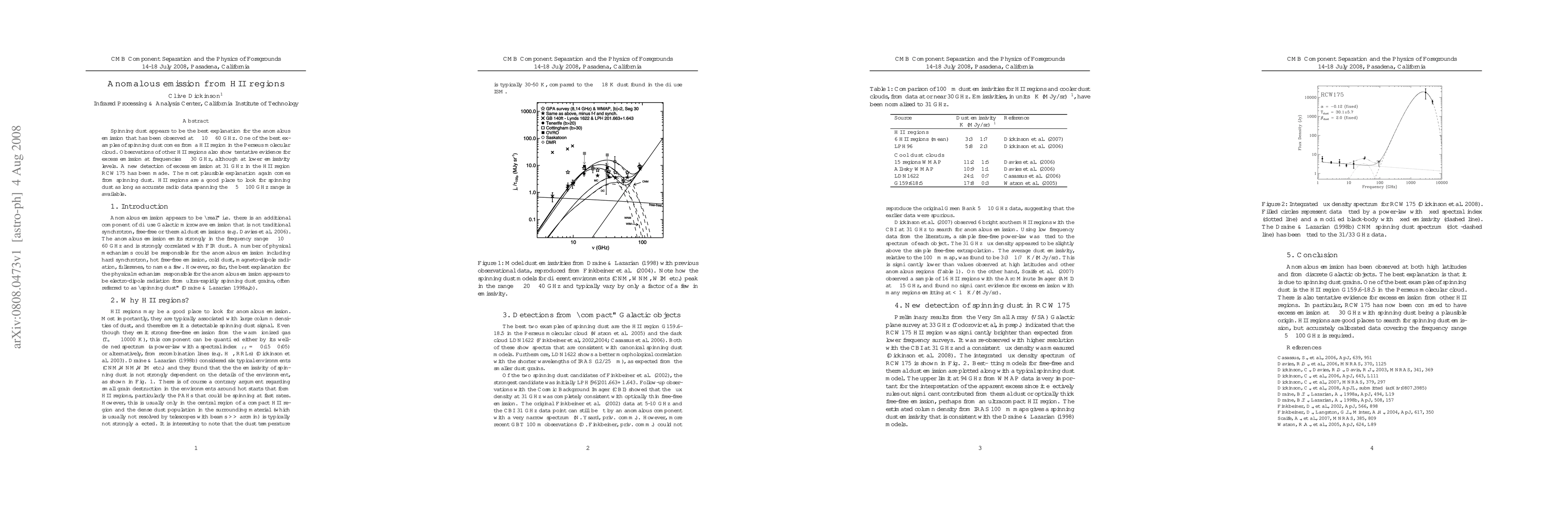 The study examines HII regions for anomalous emission, attributing it primarily to spinning dust grains. It utilizes radio data spanning the 5-100 GHz range to quantify free-free emission and detect anomalous components.