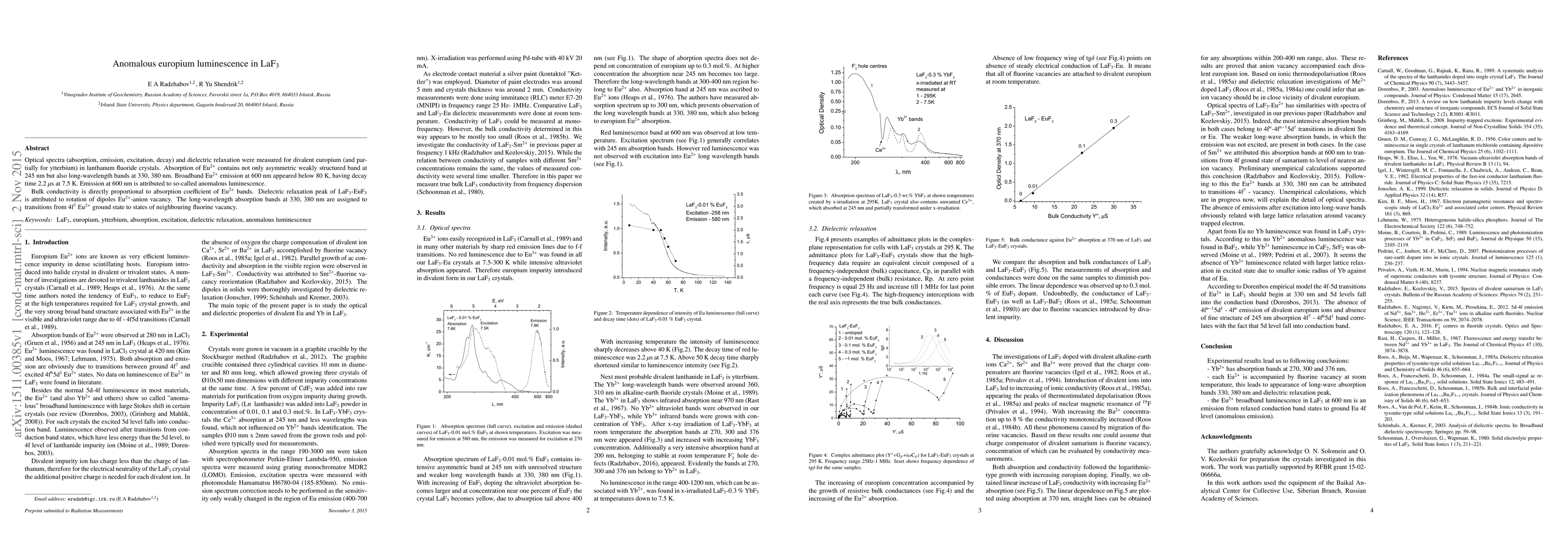 Researchers studied europium luminescence in LaF3 crystals, discovering anomalous emission at 600nm below 80K, attributed to unique electronic transitions.