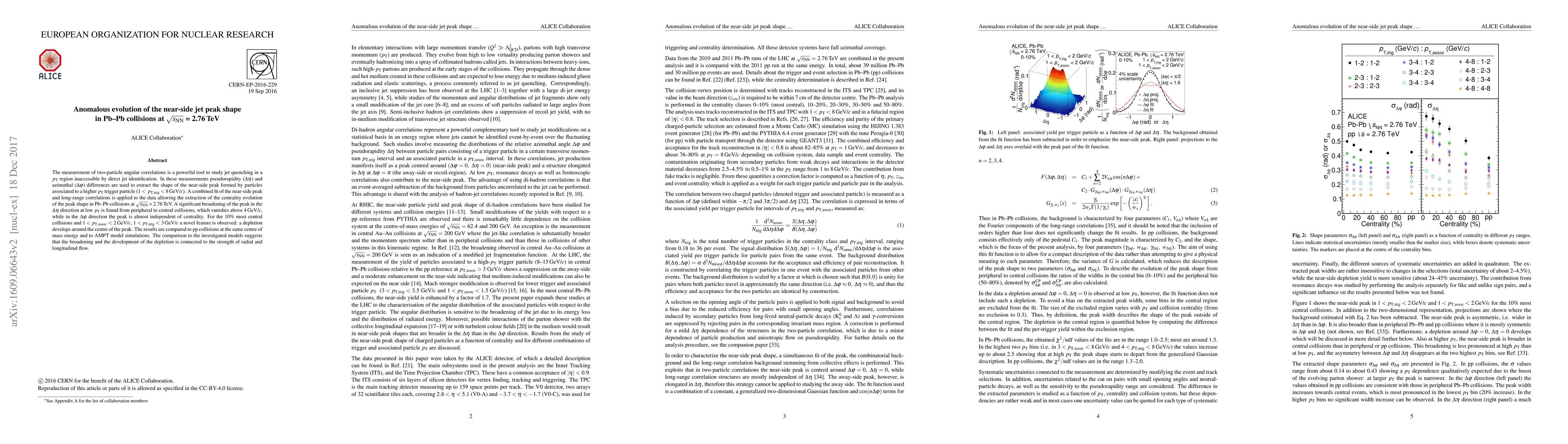 The measurement of two-particle angular correlations is a powerful tool to study jet quenching in a $p_{\mathrm{T}}$ region inaccessible by direct jet identification. In these measurements pseudorapidity ($\Delta\eta$) and azimuthal ($\Delta\varphi$) differences are used to extract the shape of the near-side peak formed by particles associated to a higher $p_{\mathrm{T}}$ trigger particle ($1 < p_{\mathrm{T, trig}} <$ 8 GeV/c). A combined fit of the near-side peak and long-range correlations is applied to the data allowing the extraction of the centrality evolution of the peak shape in Pb-Pb collisions at $\sqrt{s_{\mathrm{NN}}}$ = 2.76 TeV. A significant broadening of the peak in the $\Delta\eta$ direction at low $p_{\mathrm{T}}$ is found from peripheral to central collisions, which vanishes above 4 GeV/c, while in the $\Delta\varphi$ direction the peak is almost independent of centrality. For the 10% most central collisions and $1 < p_{\mathrm{T, assoc}} <$ 2 GeV/c, $1 < p_{\mathrm{T, trig}} <$ 3 GeV/c a novel feature is observed: a depletion develops around the centre of the peak. The results are compared to pp collisions at the same centre of mass energy and to AMPT model simulations. The comparison to the investigated models suggests that the broadening and the development of the depletion is connected to the strength of radial and longitudinal flow.