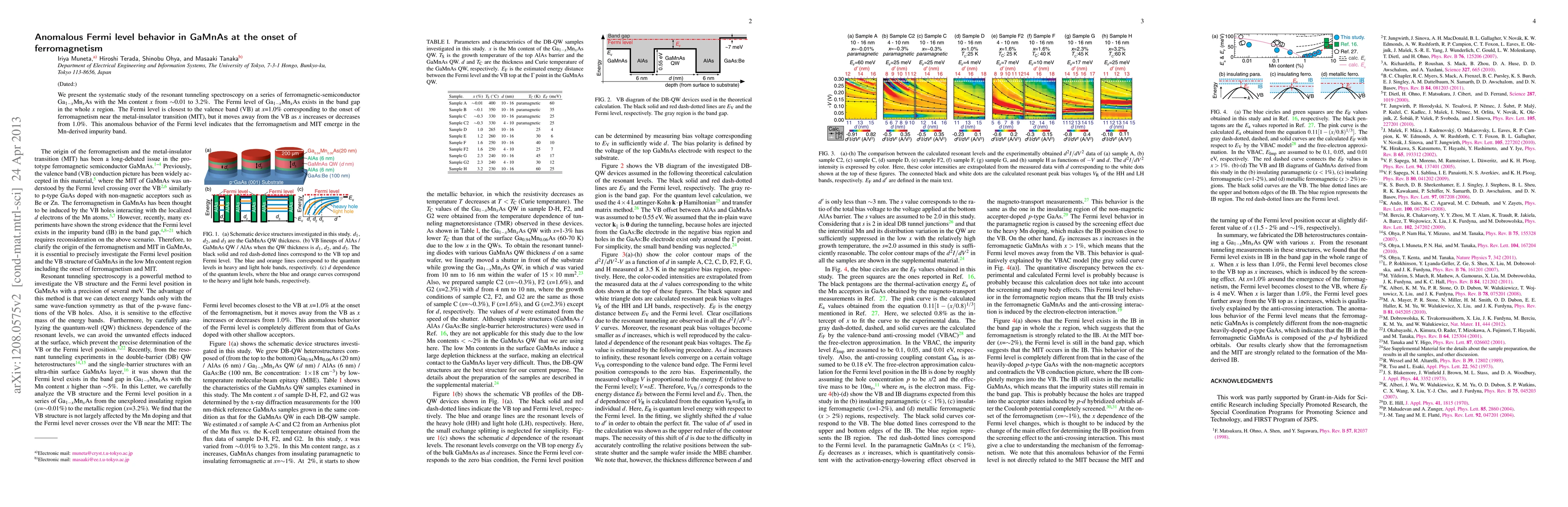 We present the systematic study of the resonant tunneling spectroscopy on a series of ferromagnetic-semiconductor Ga1-xMnxAs with the Mn content x from ~0.01 to 3.2%. The Fermi level of Ga1-xMnxAs exists in the band gap in the whole x region. The Fermi level is closest to the valence band (VB) at x=1.0% corresponding to the onset of ferromagnetism near the metal-insulator transition (MIT), but it moves away from the VB as x increasing or decreasing from 1.0%. This anomalous behavior of the Fermi level indicates that the ferromagnetism and MIT emerge in the Mn-derived impurity band.
