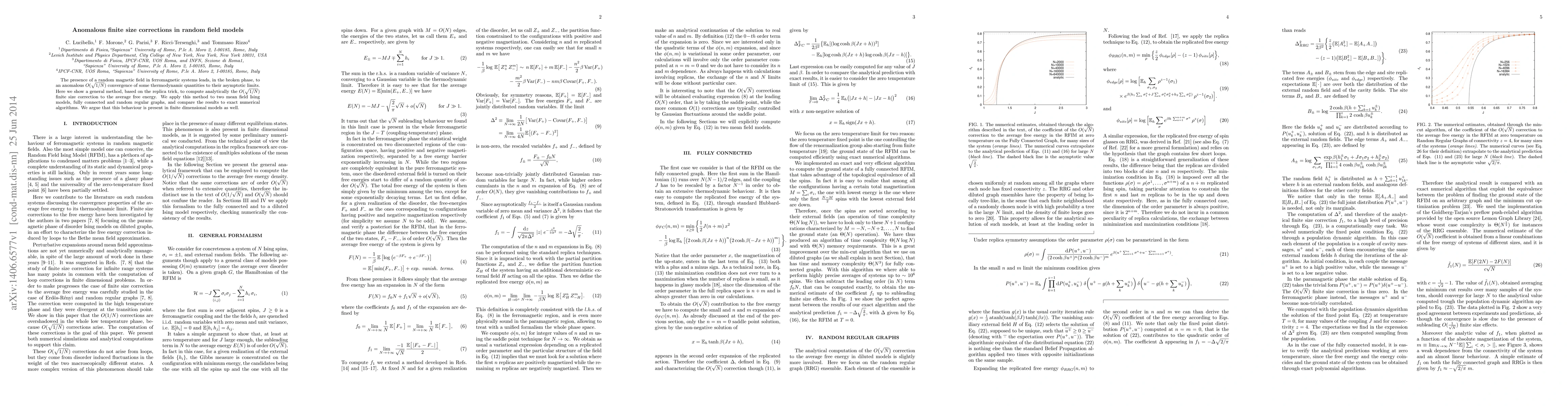 Researchers develop a method to calculate finite size corrections in ferromagnetic systems with random magnetic fields, finding that some thermodynamic quantities converge at $O( oot{1/N})$ rate.