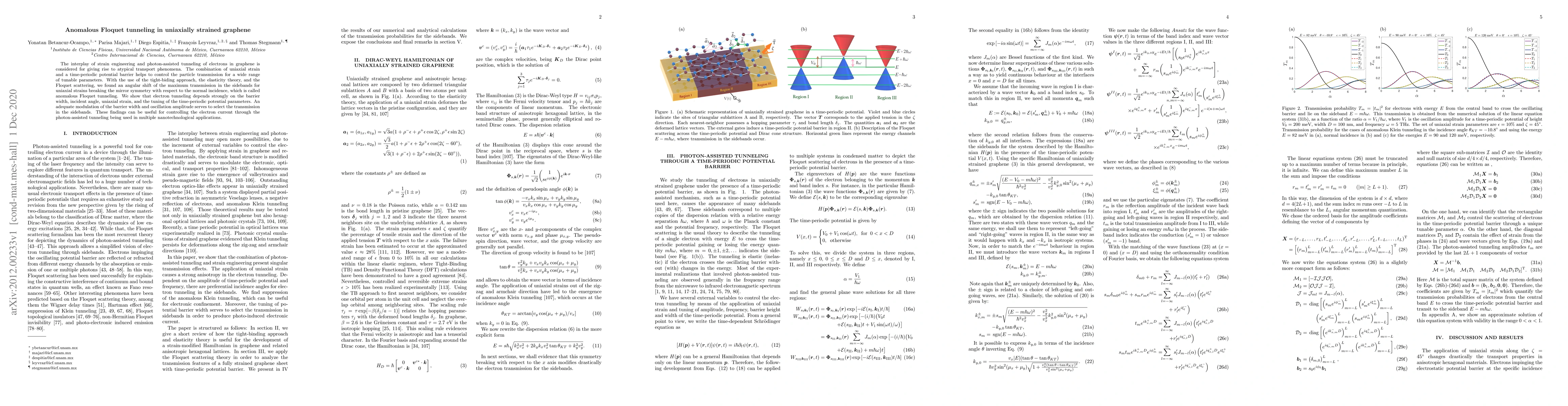 The paper explores how uniaxial strain and periodic potential barriers in graphene can lead to unique transport phenomena termed anomalous Floquet tunneling, with significant dependence on barrier width, incident angle, strain, and potential parameters, offering potential for controlling electron current in nanotechnological devices.