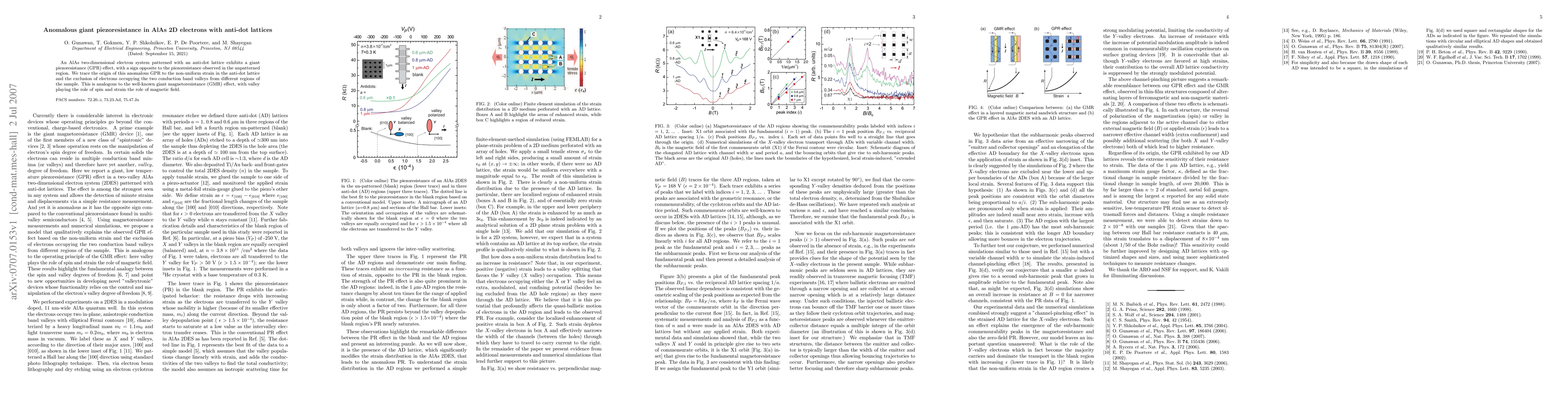This study reveals a giant piezoresistance effect in AlAs 2D electrons with an anti-dot lattice, showing an opposite sign compared to unpatterned regions. The anomalous effect is attributed to non-uniform strain and electron exclusion from different conduction band valleys, analogous to the giant magnetoresistance effect.