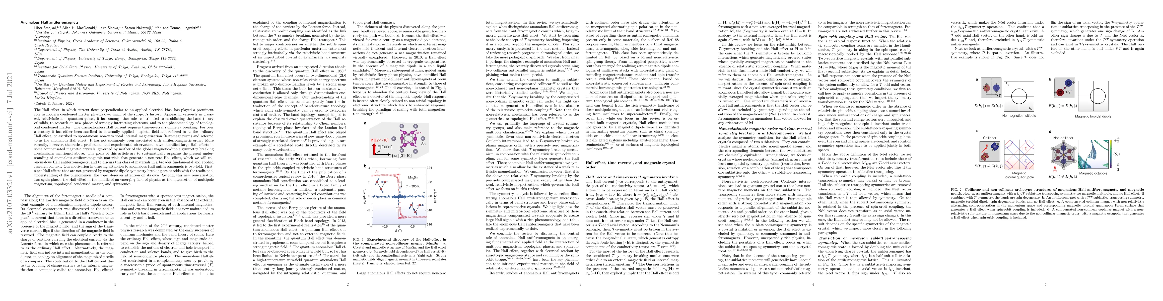 This paper systematically reviews anomalous Hall antiferromagnets—materials that exhibit a non-zero Hall effect without traditional magnetic dipole symmetry breaking—and situates them at the intersection of multipole magnetism, topological condensed matter, and spintronics. The study aims to highlight the unconventional understanding of the Hall effect and its potential applications.