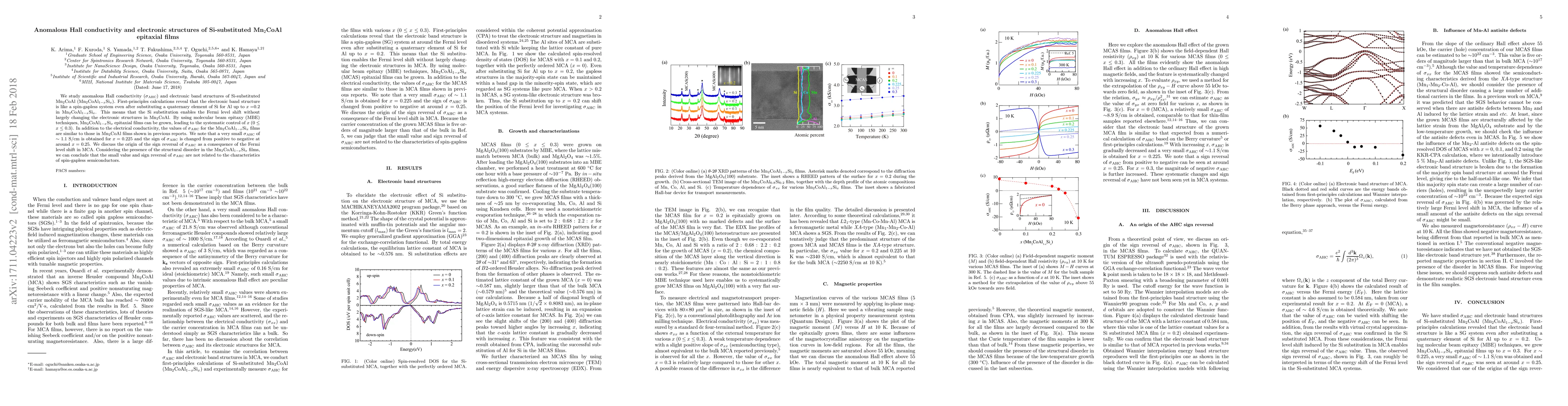 Researchers studied Si-substituted Mn2CoAl films, finding that silicon substitution enables Fermi level shift without changing electronic structure, resulting in controlled Hall conductivity values.