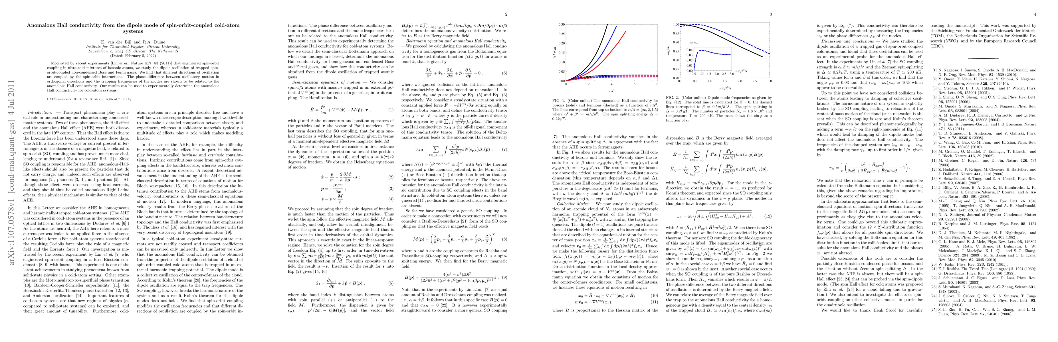 This paper investigates the dipole oscillation in spin-orbit-coupled cold atom systems, revealing a coupling between different oscillation directions due to spin-orbit interactions. The study links the phase difference between these oscillations and trapping frequencies to the anomalous Hall conductivity, providing a method for its experimental determination in cold-atom systems.