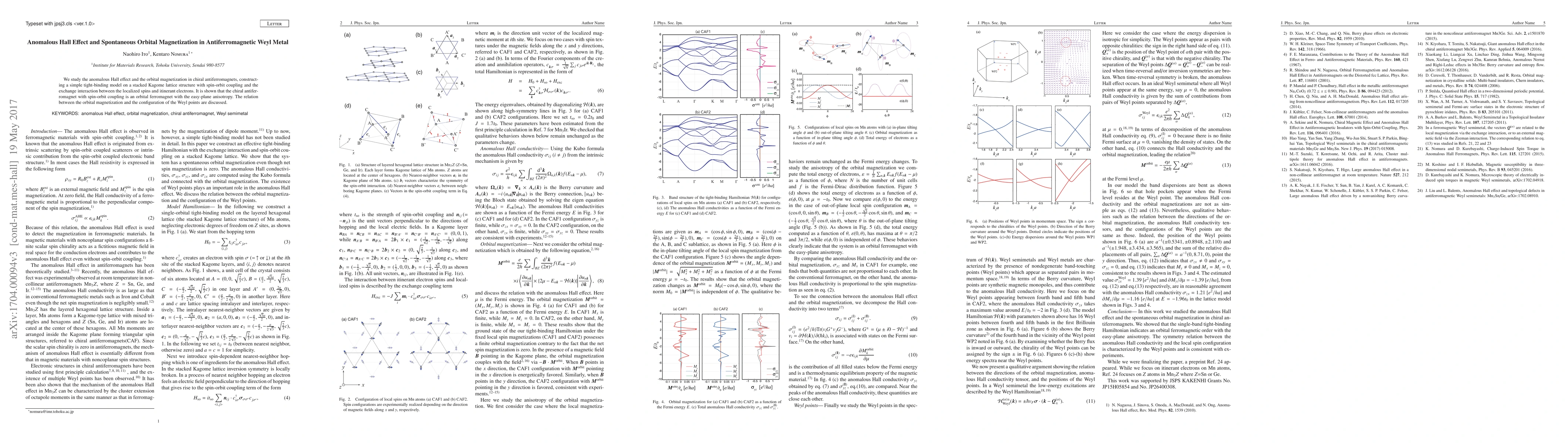 This research explores the anomalous Hall effect and spontaneous orbital magnetization in chiral antiferromagnetic Weyl metals, using a tight-binding model on a Kagome lattice. The study reveals an orbital ferromagnetic ground state with easy-plane anisotropy and discusses the link between orbital magnetization and Weyl point configurations.