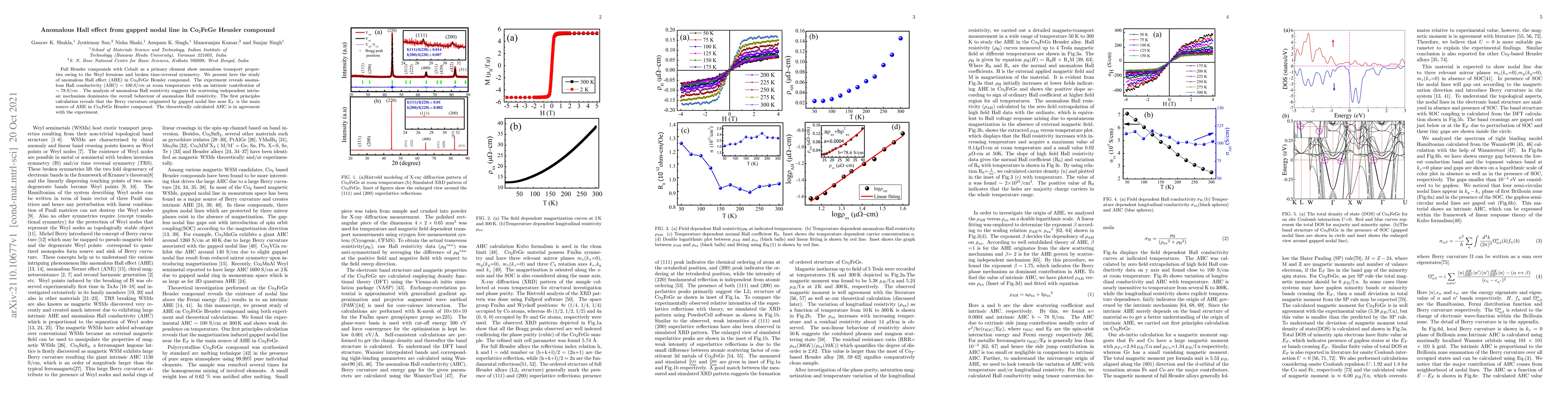 The paper presents a detailed analysis of the AHE in Co2FeGe, attributing it to gapped nodal lines near the Fermi energy, and validates the findings through first-principles calculations.