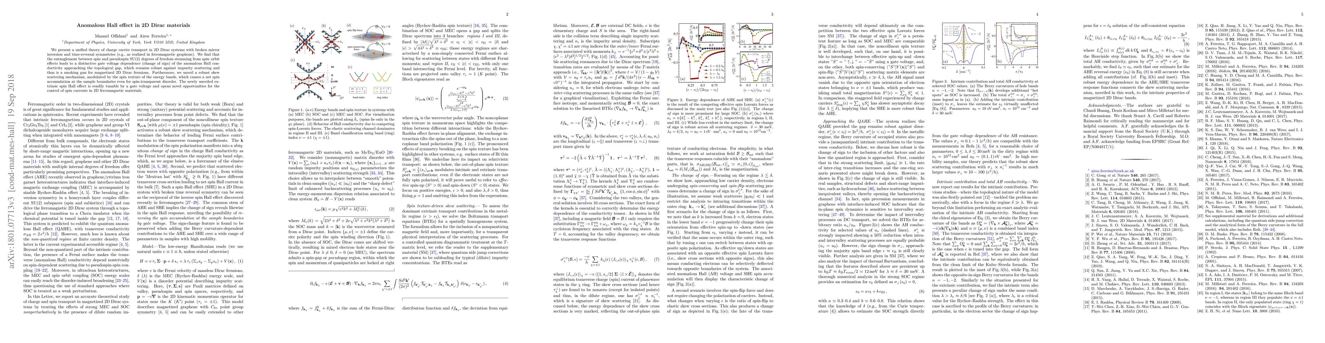 The paper presents a unified theory explaining the anomalous Hall effect in 2D Dirac materials with broken symmetries, revealing a distinctive gate voltage-dependent anomalous Hall conductivity and a tunable extrinsic spin Hall effect due to spin-orbit effects and spin texture. The findings provide a robust mechanism for controlling spin currents in magnetized 2D Dirac fermions.
