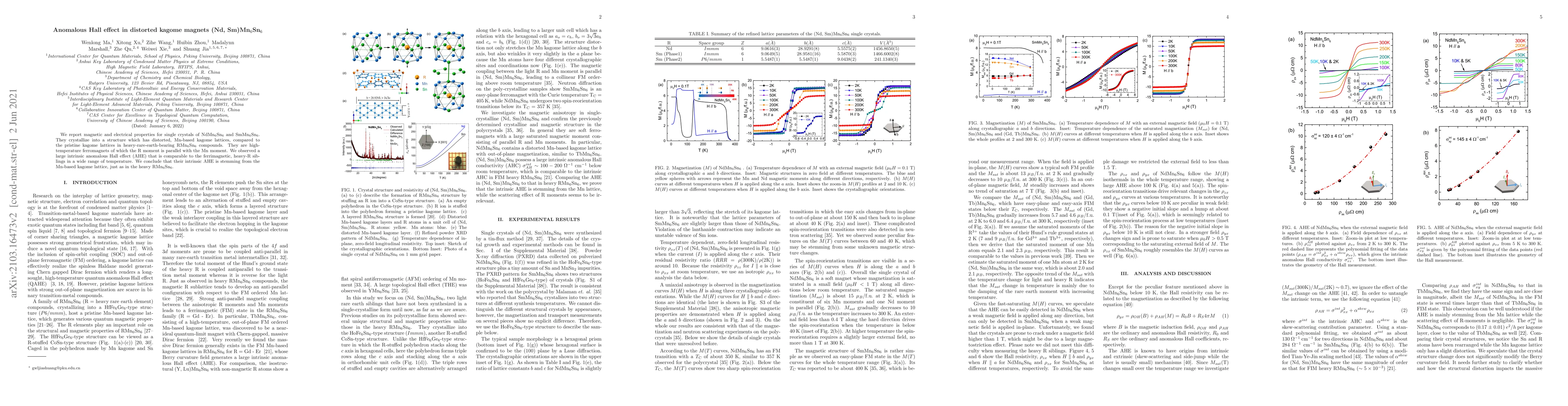 We report magnetic and electrical properties for single crystals of NdMn$_6$Sn$_6$ and SmMn$_6$Sn$_6$. They crystallize into a structure which has distorted, Mn-based kagome lattices, compared to the pristine kagome lattices in heavy-rare-earth-bearing RMn$_6$Sn$_6$ compounds. They are hightemperature ferromagnets of which the R moment is parallel with the Mn moment. We observed a large intrinsic anomalous Hall effect (AHE) that is comparable to the ferrimagnetic, heavy-R siblings in a wide range of temperature. We conclude that their intrinsic AHE is stemming from the Mn-based kagome lattice, just as in the heavy RMn$_6$Sn$_6$.