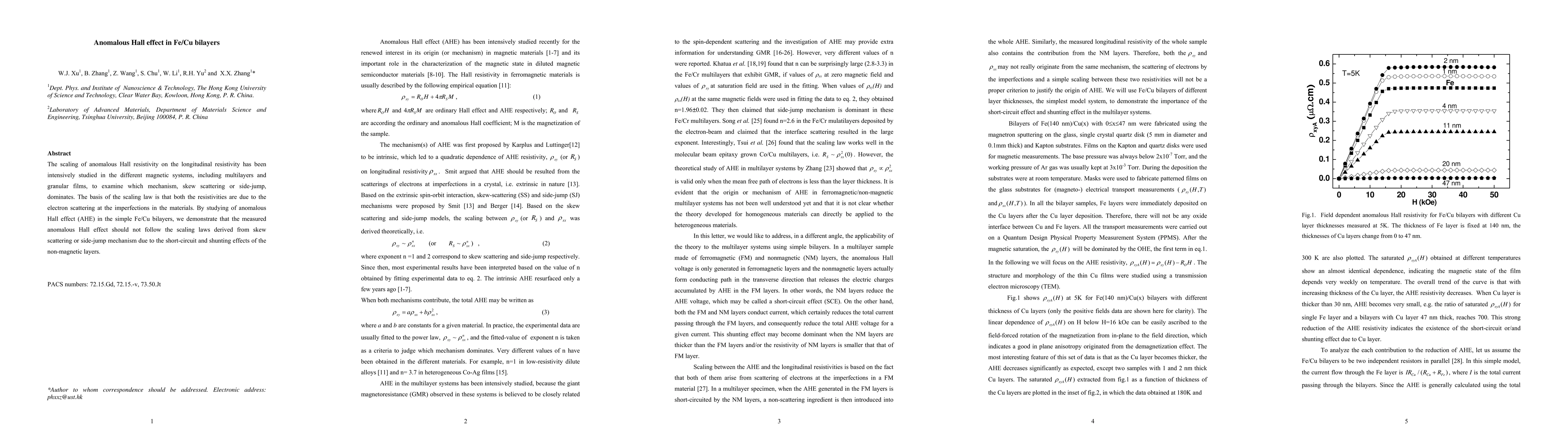 The paper presents a detailed analysis of the AHE in Fe/Cu bilayers, highlighting the impact of short-circuit and shunting effects on AHE resistivity, and demonstrating that scaling laws from skew scattering and side-jump mechanisms are not applicable in multilayer systems.