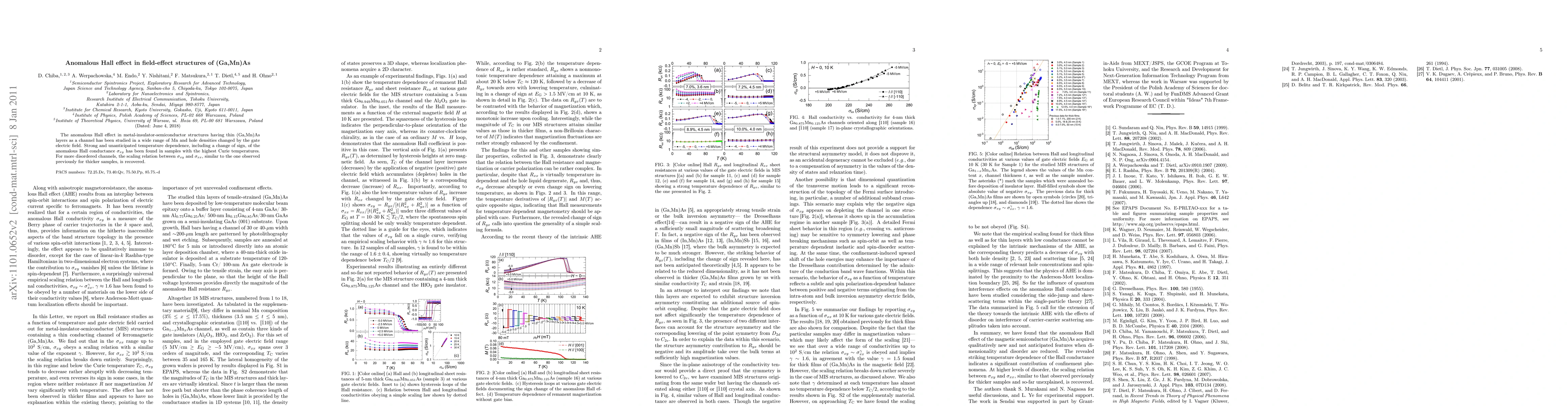 This study investigates the anomalous Hall effect in field-effect structures with (Ga,Mn)As layers, revealing a strong and unexpected temperature-dependent variation, including sign reversal, in samples with high Curie temperatures. Disordered channels exhibit a scaling relation between anomalous and normal Hall conductance.