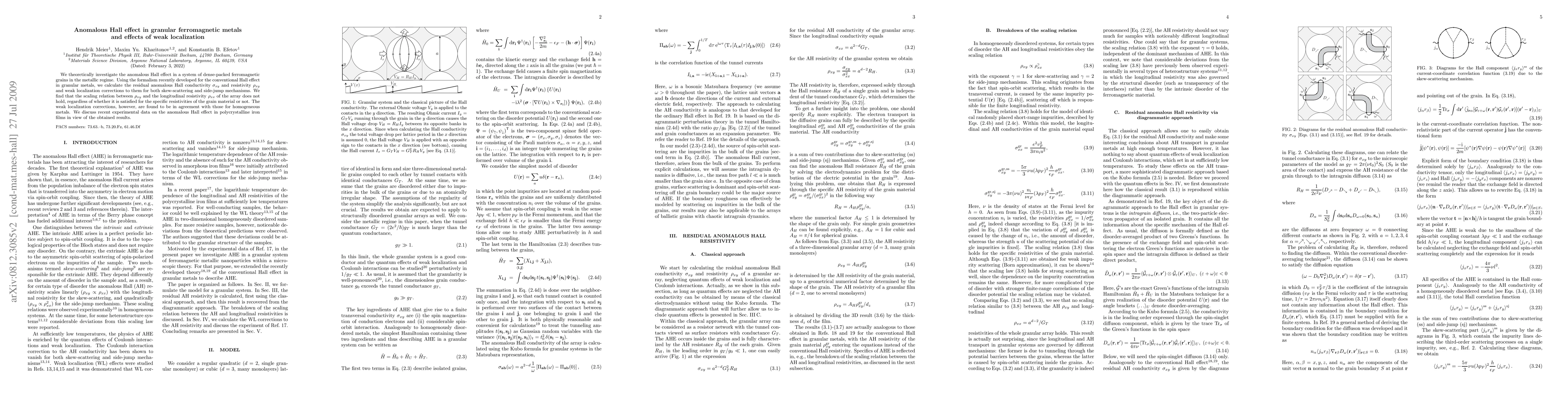 This paper theoretically investigates the anomalous Hall effect in dense-packed ferromagnetic grains in metallic systems, finding that the scaling relation for resistivity does not apply, unlike in homogeneously disordered metals. The weak localization corrections align with those in homogeneous metals.