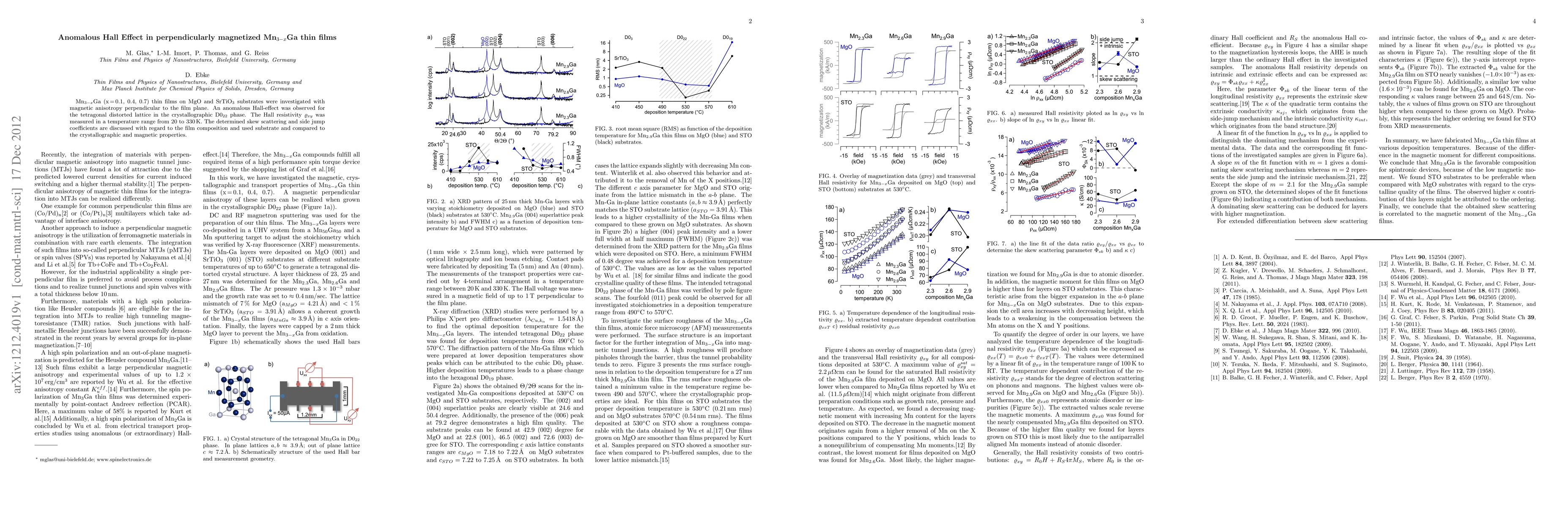 Mn$_{3-x}$Ga (x = 0.1, 0.4, 0.7) thin films on MgO and SrTiO$_3$ substrates were investigated with magnetic anisotropy perpendicular to the film plane. An anomalous Hall-effect was observed for the tetragonal distorted lattice in the crystallographic D0$_{22}$ phase. The Hall resistivity $\varrho_{xy}$ was measured in a temperature range from 20 to 330 K. The determined skew scattering and side jump coefficients are discussed with regard to the film composition and used substrate and compared to the crystallographic and magnetic properties.