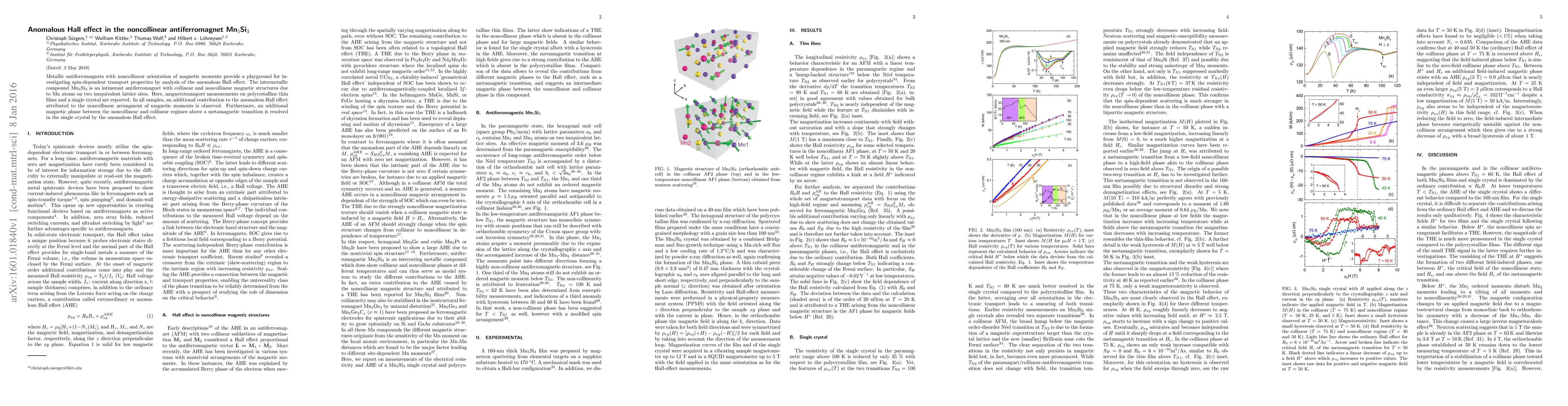 Metallic antiferromagnets with noncollinear orientation of magnetic moments provide a playground for investigating spin-dependent transport properties by analysis of the anomalous Hall effect. The intermetallic compound Mn5Si3 is an intinerant antiferromagnet with collinear and noncollinear magnetic structures due to Mn atoms on two inequivalent lattice sites. Here, magnetotransport measurements on polycrystalline thin films and a single crystal are reported. In all samples, an additional contribution to the anomalous Hall effect attributed to the noncollinear arrangment of magnetic moments is observed. Furthermore, an additional magnetic phase between the noncollinear and collinear regimes above a metamagnetic transition is resolved in the single crystal by the anomalous Hall effect.