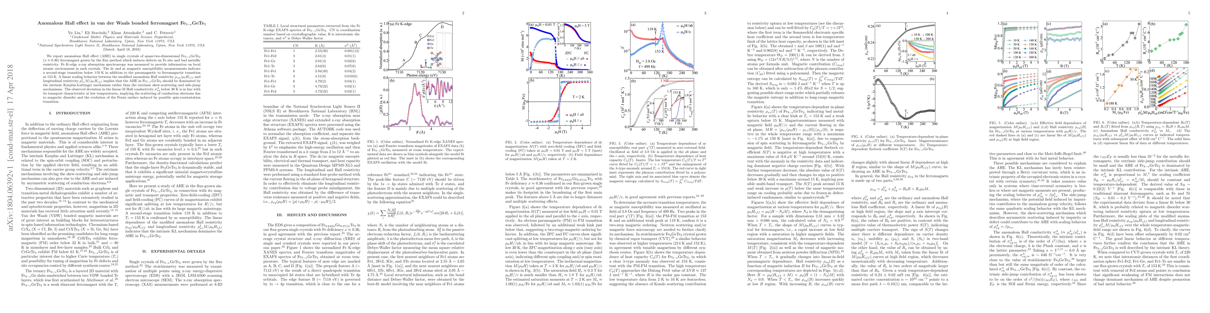 This study investigates the anomalous Hall effect (AHE) in quasi-two-dimensional Fe$_{3-x}$GeTe$_2$ ferromagnets, revealing intrinsic AHE dominated by the Karplus-Luttinger mechanism. The research highlights a second-stage magnetic transition and suggests electron scattering due to magnetic disorder at low temperatures.