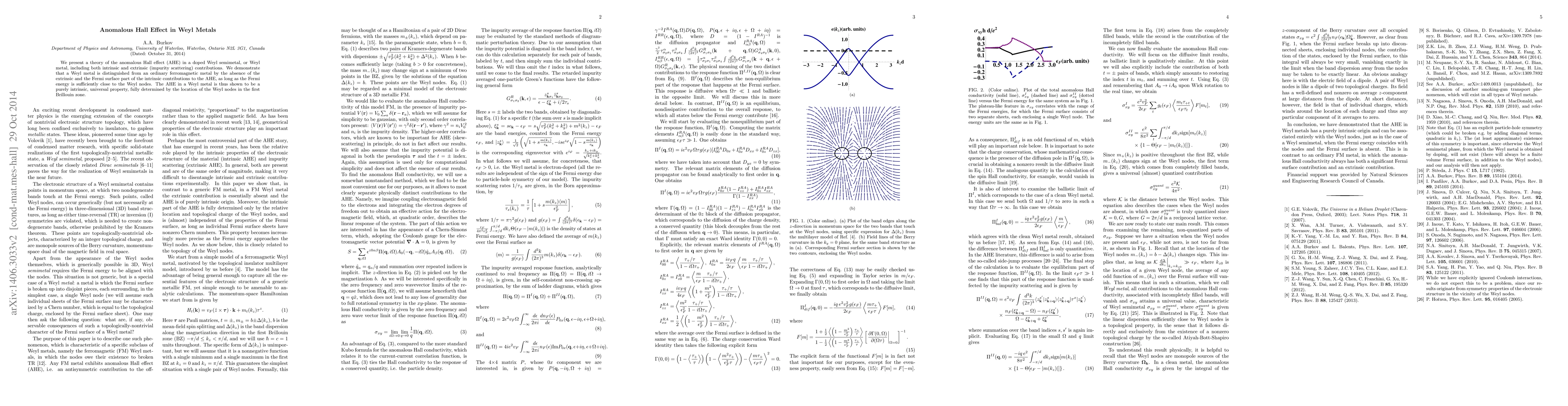 This paper theorizes the anomalous Hall effect (AHE) in doped Weyl metals, showing it is purely intrinsic and universal, distinct from ordinary ferromagnetic metals due to the absence of extrinsic contributions. The AHE in Weyl metals is determined solely by the position of Weyl nodes in the Brillouin zone.