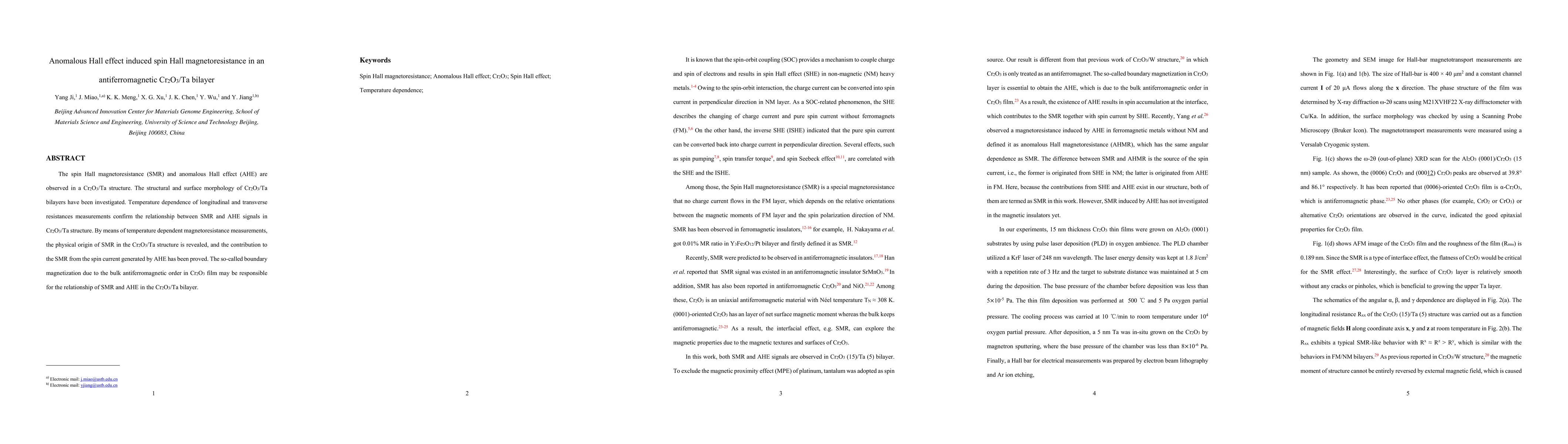 Researchers observe anomalous Hall effect and spin Hall magnetoresistance in a Cr2O3/Ta bilayer, attributing the phenomenon to boundary magnetization from the antiferromagnetic order in the Cr2O3 film.